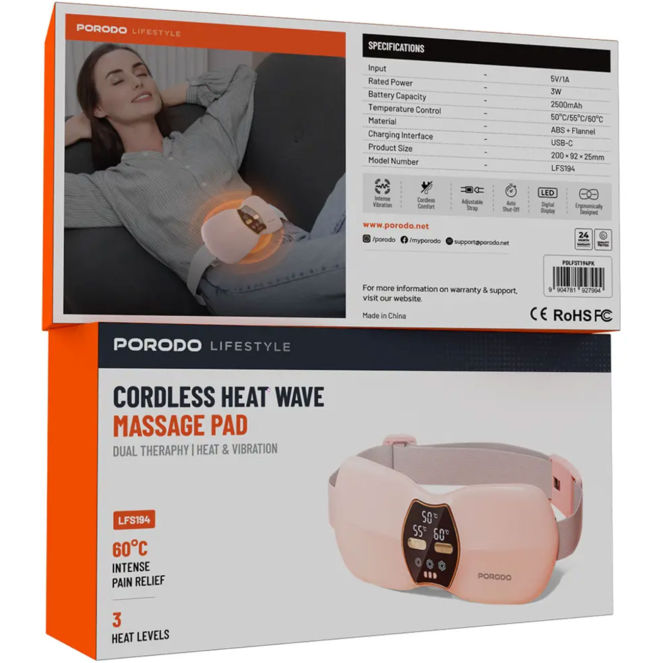ماساژور قاعدگی حرارتی پورودو Porodo مدل PDLFST194PK شارژی