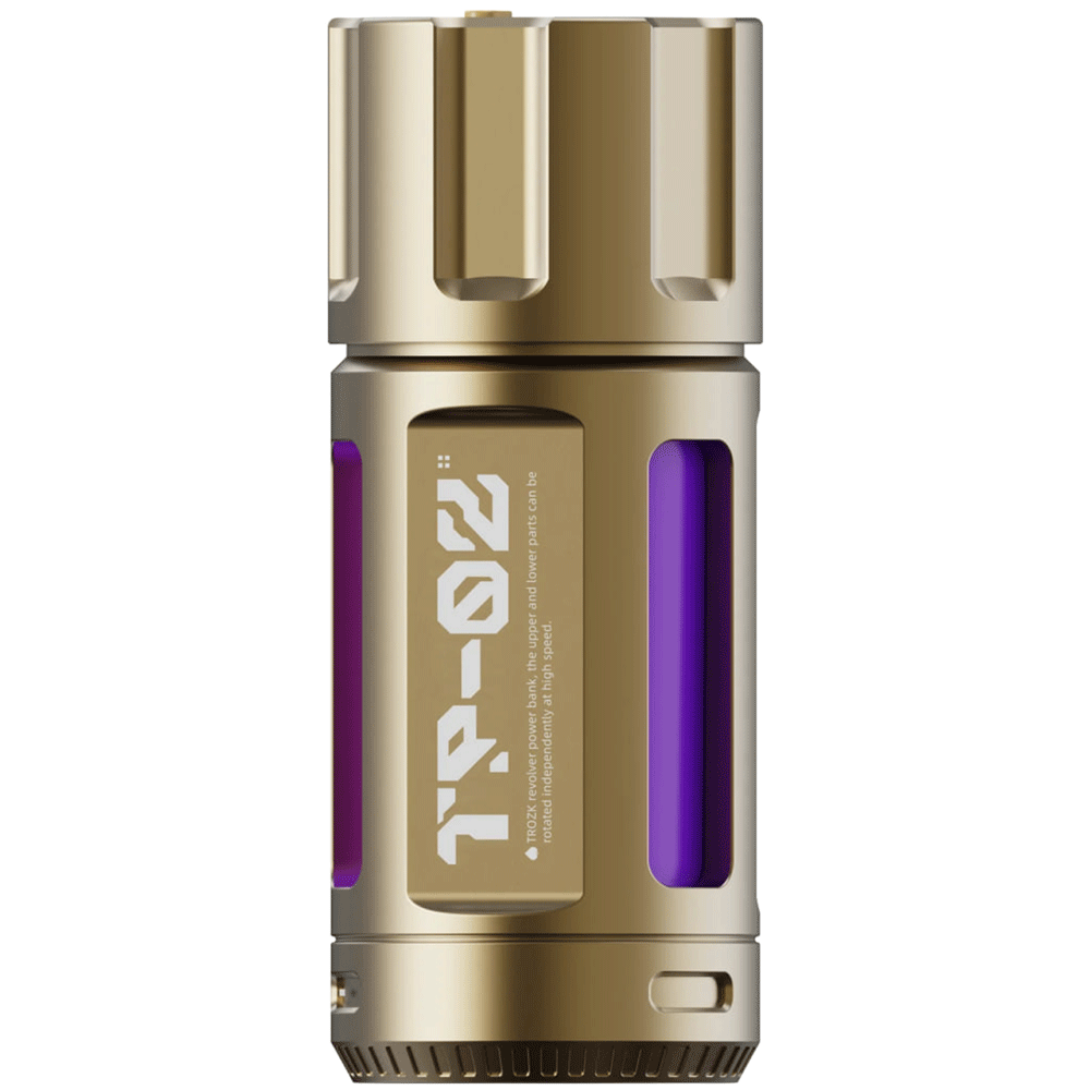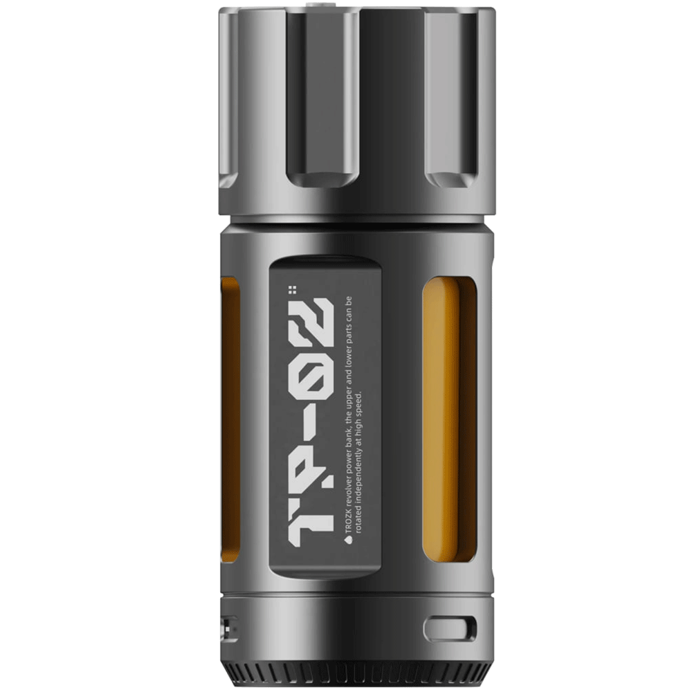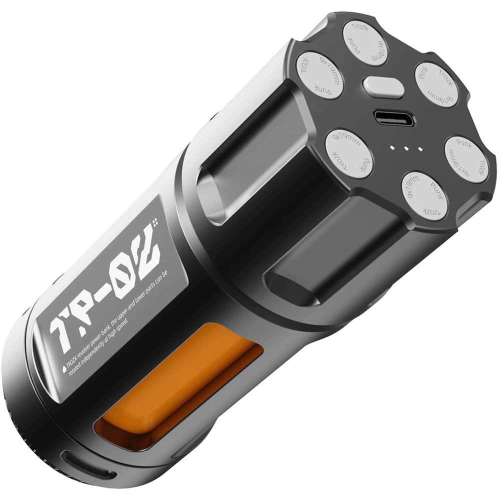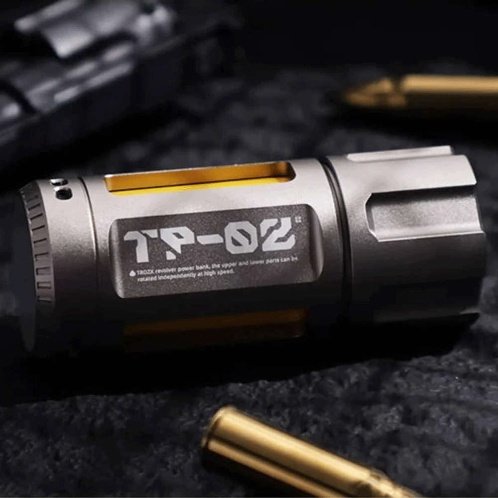 پاوربانک TP02-05 با طراحی استوانهای چرخان، شبیه به سیلندر اسلحه، ظاهری منحصربهفرد و چشمنواز دارد. بخشهای بالایی و پایینی این دستگاه بهصورت مستقل میچرخند و حس یک گجت مکانیکی جذاب را القا میکنند. این طراحی نه تنها کاربردی است، بلکه حس سرگرمی و آرامش را به تجربه استفاده اضافه میکند، و آن را از پاوربانکهای معمولی متمایز میسازد.