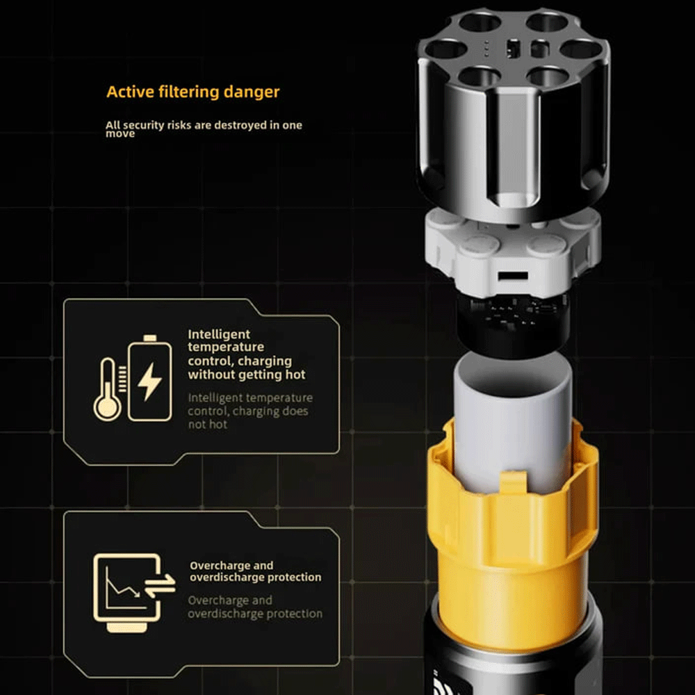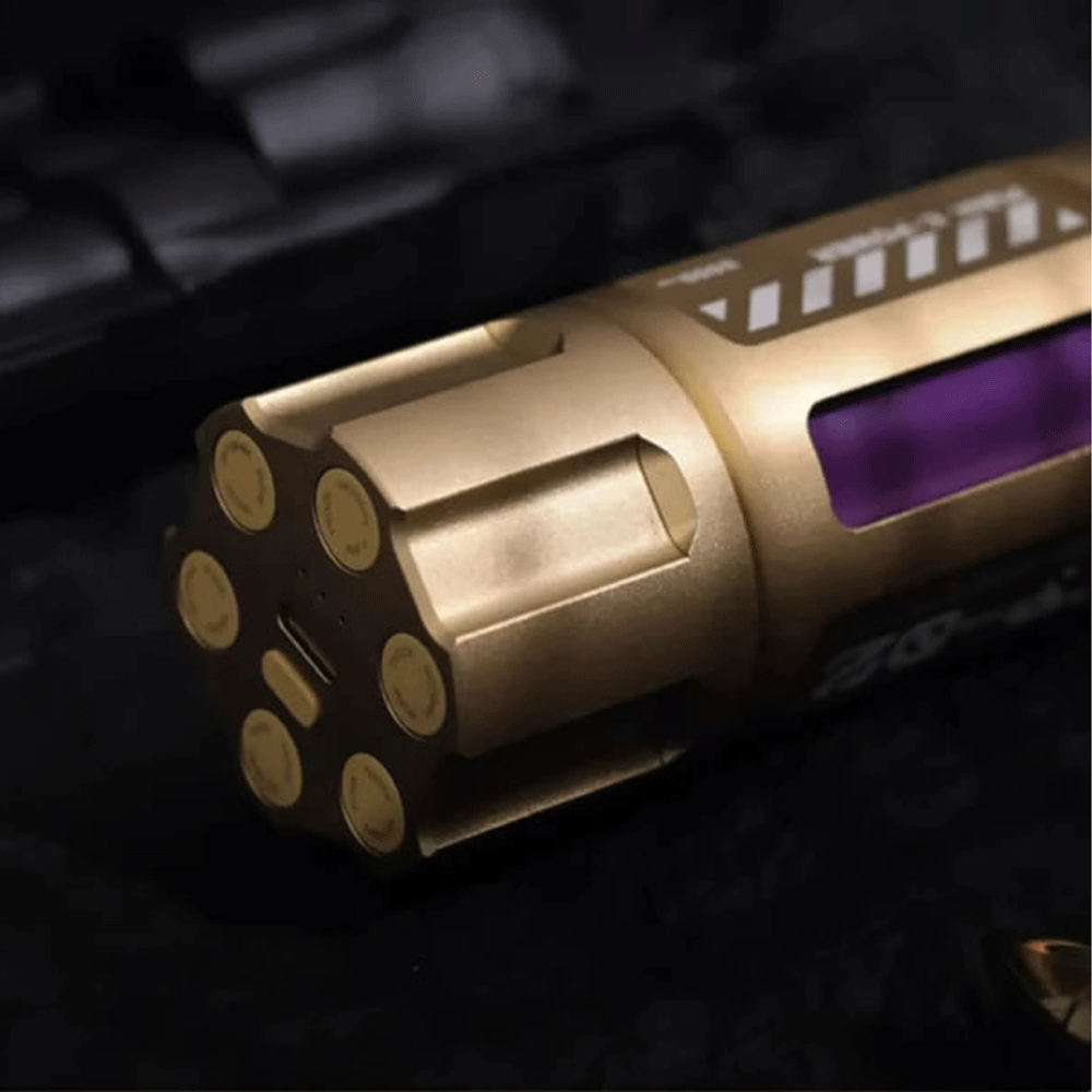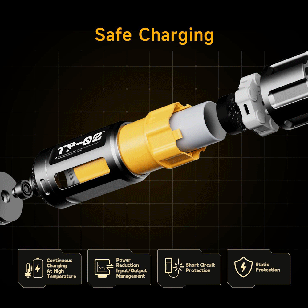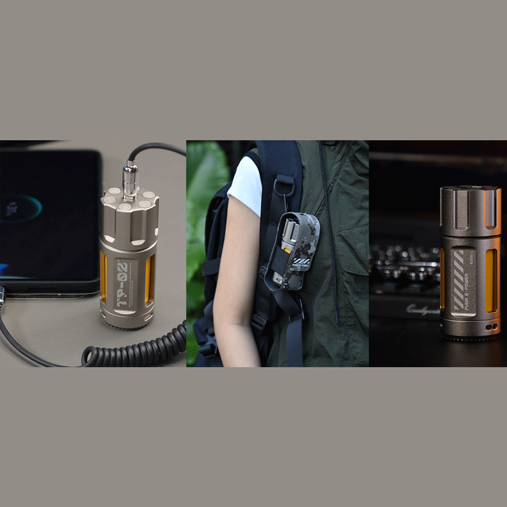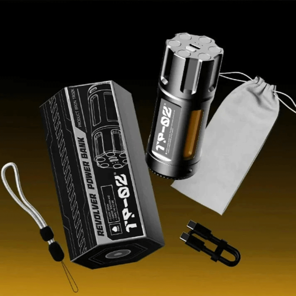 پاوربانک TP02-05 با طراحی استوانهای چرخان، شبیه به سیلندر اسلحه، ظاهری منحصربهفرد و چشمنواز دارد. بخشهای بالایی و پایینی این دستگاه بهصورت مستقل میچرخند و حس یک گجت مکانیکی جذاب را القا میکنند. این طراحی نه تنها کاربردی است، بلکه حس سرگرمی و آرامش را به تجربه استفاده اضافه میکند، و آن را از پاوربانکهای معمولی متمایز میسازد.
