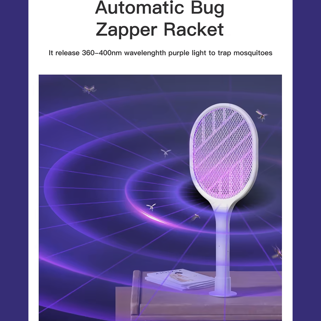 C1 ZSC240917 با ظاهری راکت بدمینتون، از ABS مقاوم حرارتی ساخته شده—ابعاد 28 × 24 × 45 سانتیمتر و وزن 470 گرم، تعادل عالی رو برای استفاده دستی ارائه میده. پوشش 360 درجه، حشرات رو از هر طرف جذب و حذف میکنه و پایه شارژ رومیزی، حالت خودکار رو برای خواب یا مهمانی فعال میکنه—بدون نیاز به نگه داشتن.