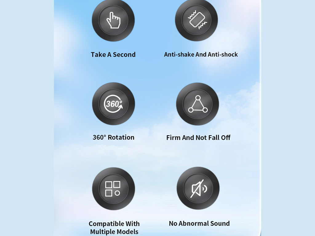 این پایه نگهدارنده با طیف وسیعی از وسایل نقلیه از جمله موتورسیکلت، موتور برقی، دوچرخه و اسکوتر که قطر فرمان آنها بین ۱۳۷ تا ۱۸۹ میلیمتر باشد، سازگاری کامل دارد. علاوه بر این، برای استفاده با تمامی برندها و مدلهای گوشی موبایل در محدوده سایز ذکر شده، کاملاً مناسب است.