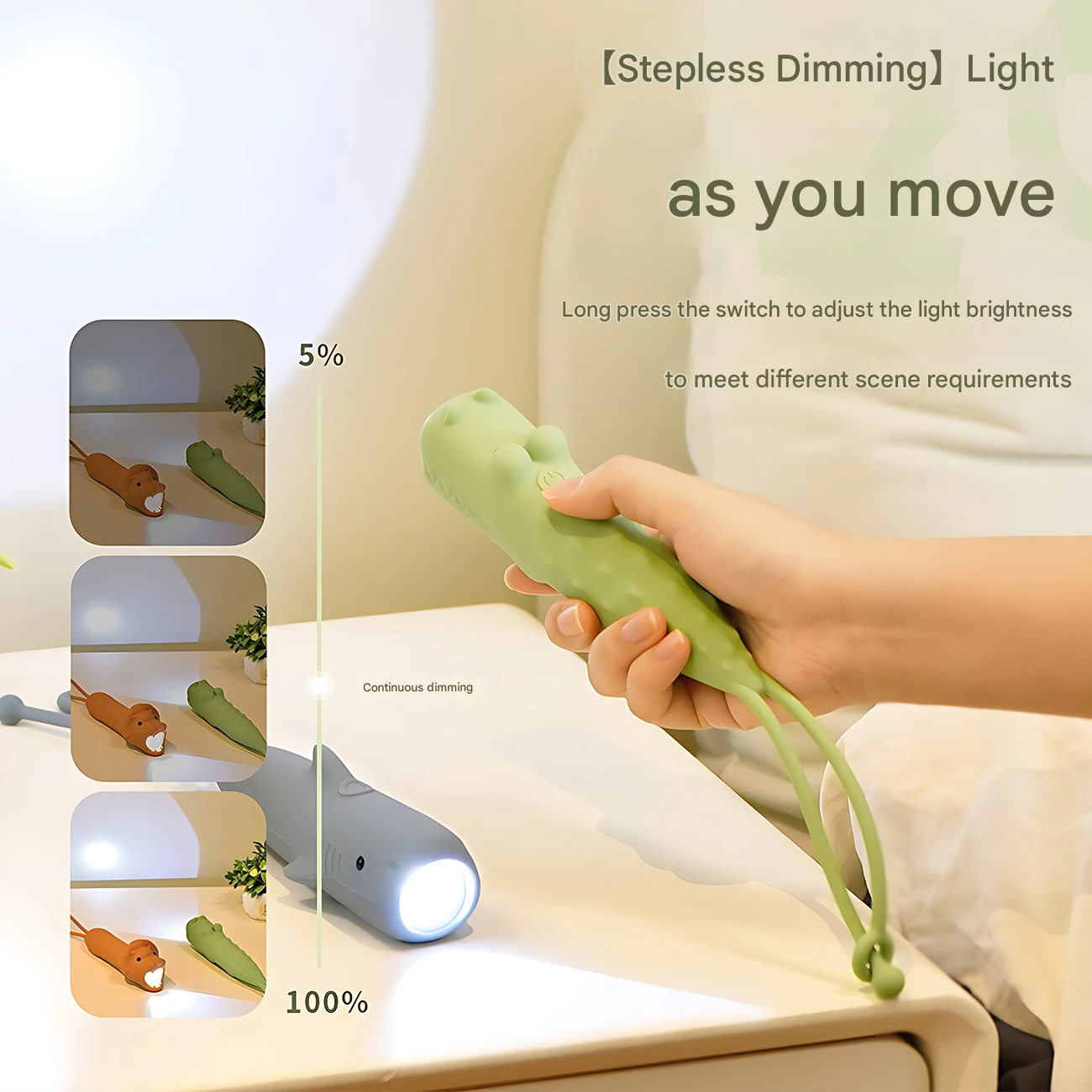 چراغ سیلیکونی قابل شارژ طرح حیوانات مدل LJC-239 با تنظیم شدت، 2 حالت، باتری 1200mAh و بند آویز، انتخابی برتر برای روشنایی بانمک و ایمنه. این چراغ فانتزی با پرتاب نور طولانی و جنس نرم، برای کودکان، مطالعه یا اضطرار ایدهآله.