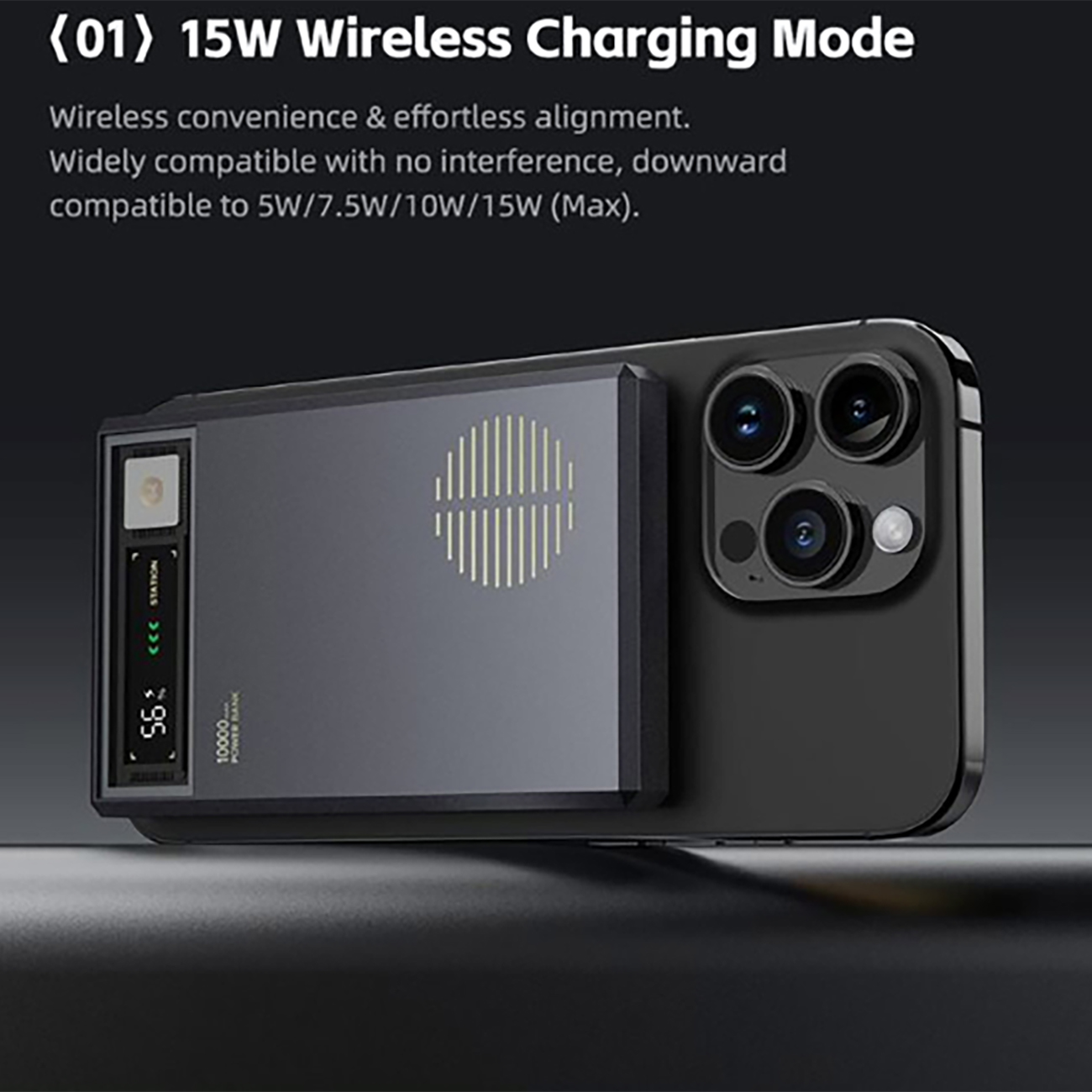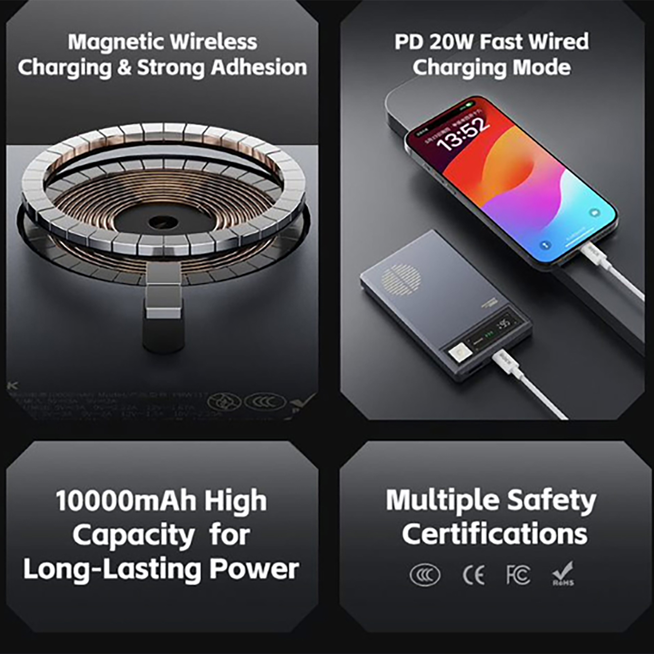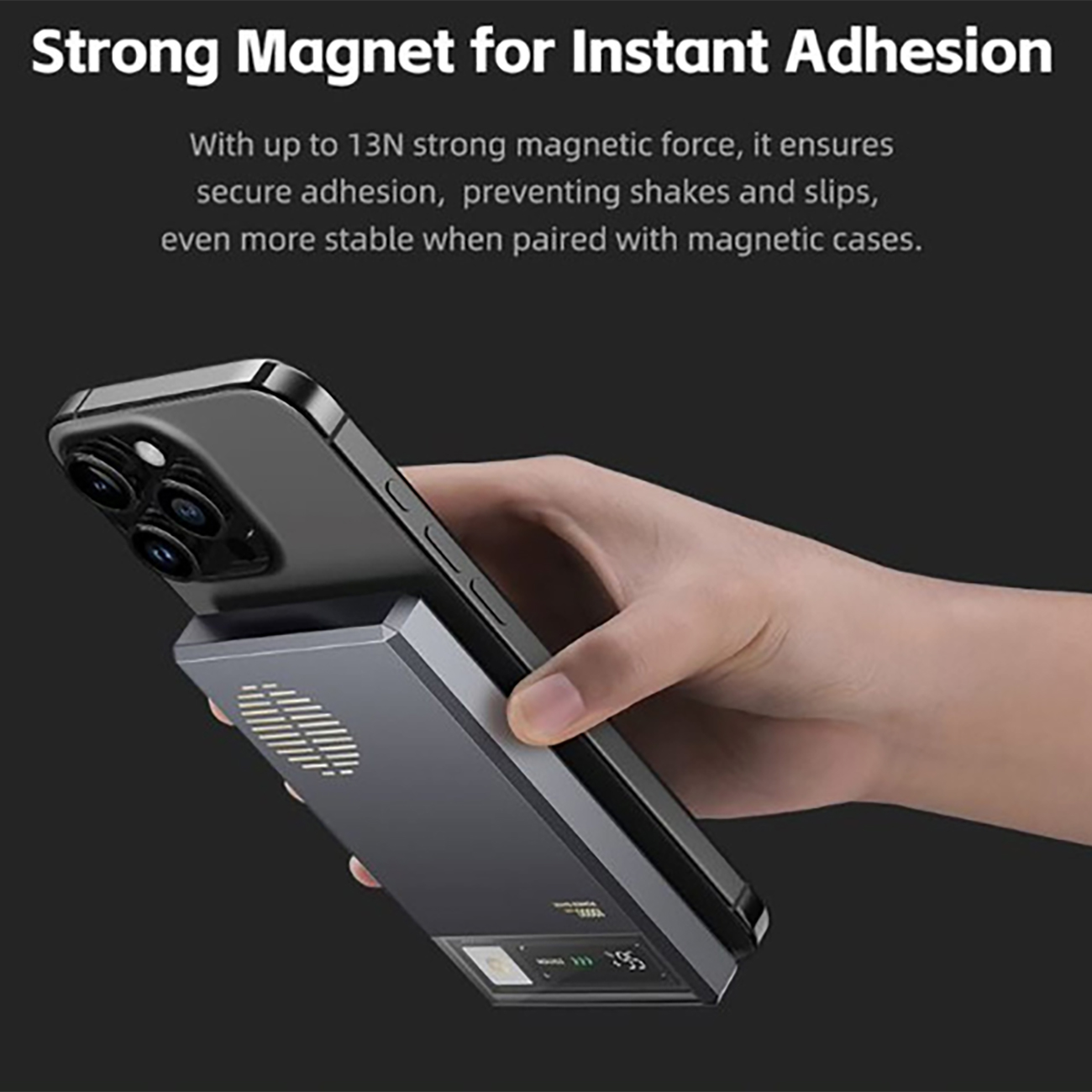 اتصال مغناطیسی ایمن و عملکرد پایهای آن، این پاوربانک را به همراهی کاربردی و مطمئن در مسیرهای روزمره یا سفرهای طولانی تبدیل کرده است.