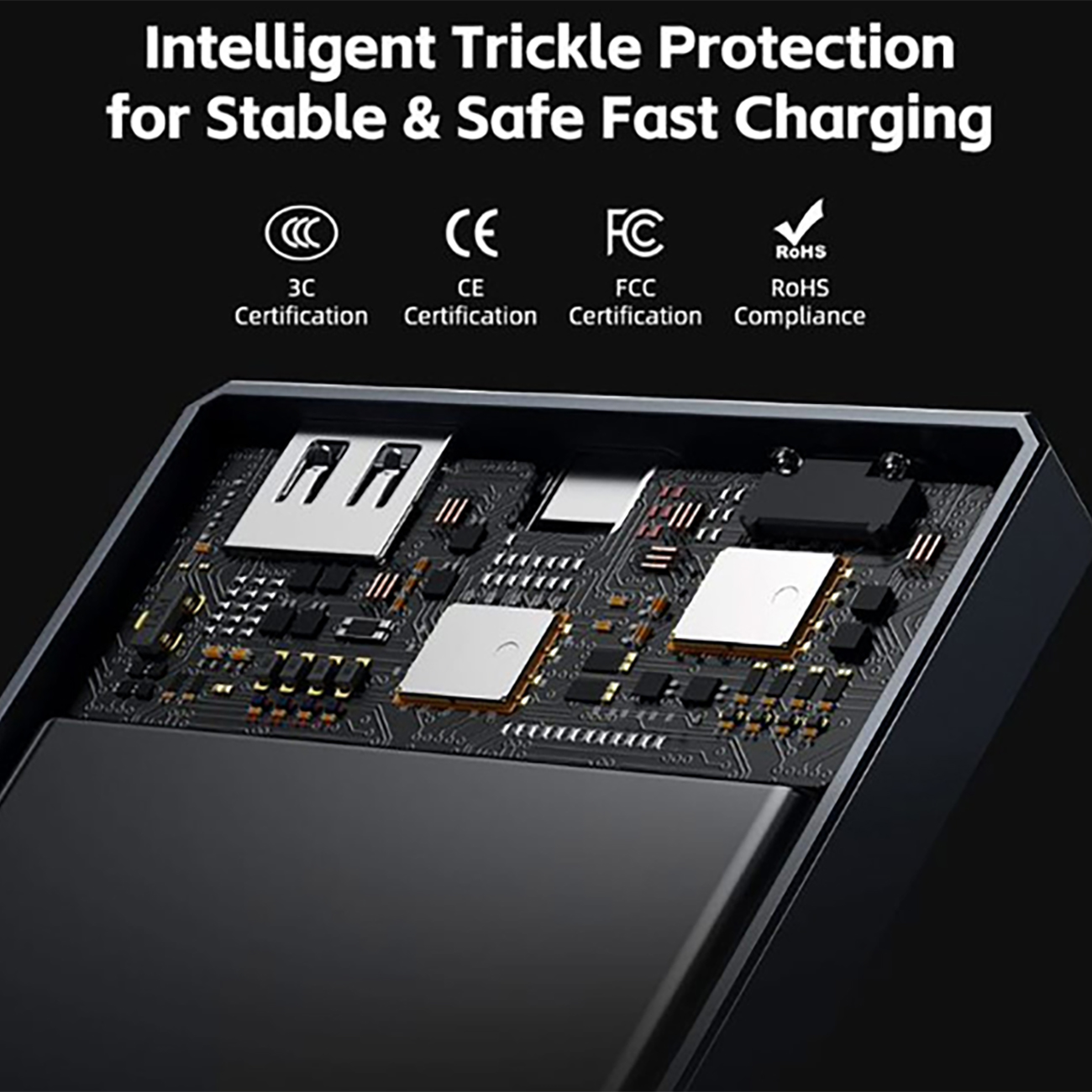 این پاوربانک از پروتکل شارژ سریع Power Delivery با حداکثر توان ۲۰ وات پشتیبانی میکند. در قسمت بالای دستگاه، یک نمایشگر دیجیتال تعبیه شده که امکان نظارت دقیق و آسان بر درصد شارژ باقیمانده باتری را برای کاربر فراهم میسازد.