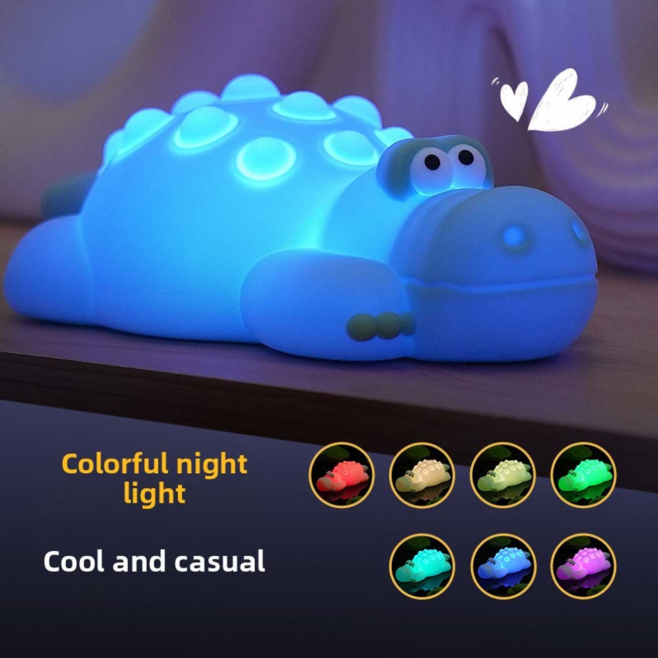 چراغ خواب فانتزی Runmei مدل JXJA056 با طرح کروکودیل، 7 رنگ، 3 سطح و باتری 70 ساعته، انتخابی بانمک و ایمن برای اتاق بچهست. این چراغ سیلیکونی با Type-C و گواهی GB، هدیهای عالیه.