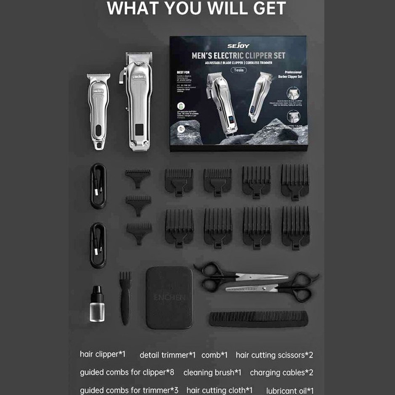 ماشین اصلاح شارژی سجوی SEJOY مدل TESLA پک دو عدد ی چندکاره