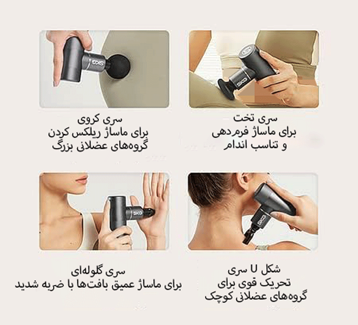 این ماساژور با 4 سری قابل تعویض عرضه میشود که هر کدام برای کاربرد خاصی طراحی شدهاند: