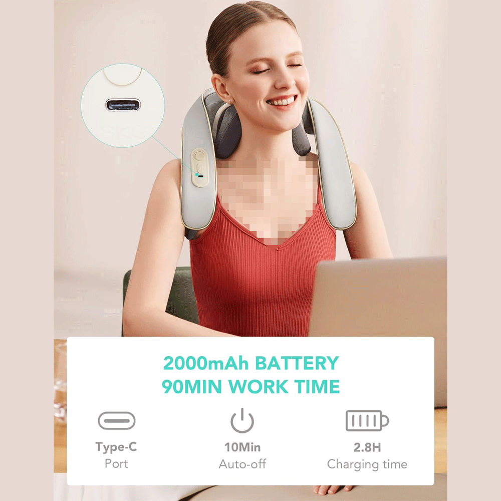 این دستگاه با دارا بودن دو سطح گرمایی قابل تنظیم (40 درجه و 45 درجه سانتیگراد)، به افزایش مؤثر گردش خون و کاهش التهاب عضلات کمک میکند. گرمای ملایم و کنترلشده ماساژور گردن و شانه SKG H5 Mini موجب آرامش عمیق بافتهای عضلانی شده و اثر بخشی فرآیند ماساژ را به طور قابل توجهی افزایش میدهد. این ویژگی به ویژه برای افرادی که از دردهای مزمن یا گرفتگیهای عضلانی رنج میبرند، بسیار سودمند است.