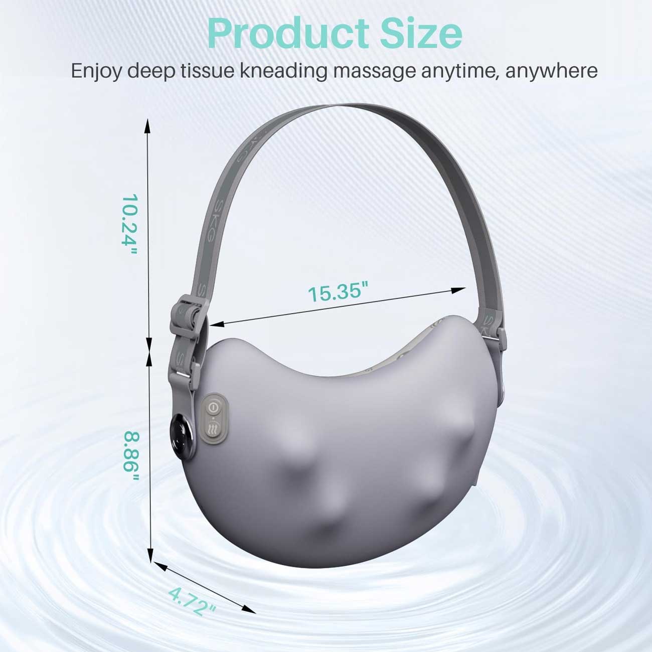یکی از ویژگیهای متمایزکننده SKG T1-2 Pro، وجود یک بند دوشی کاملاً قابل تنظیم است که بهصورت هوشمندانه برای حداکثر راحتی کاربر طراحی شده است. این بند به شما کمک میکند تا دستگاه را به راحتی روی شانهها یا پشت خود ثابت نگه دارید و بدون نیاز به نگهداشتن آن با دستها، از ماساژی کاملاً رها، راحت و بیدغدغه لذت ببرید.