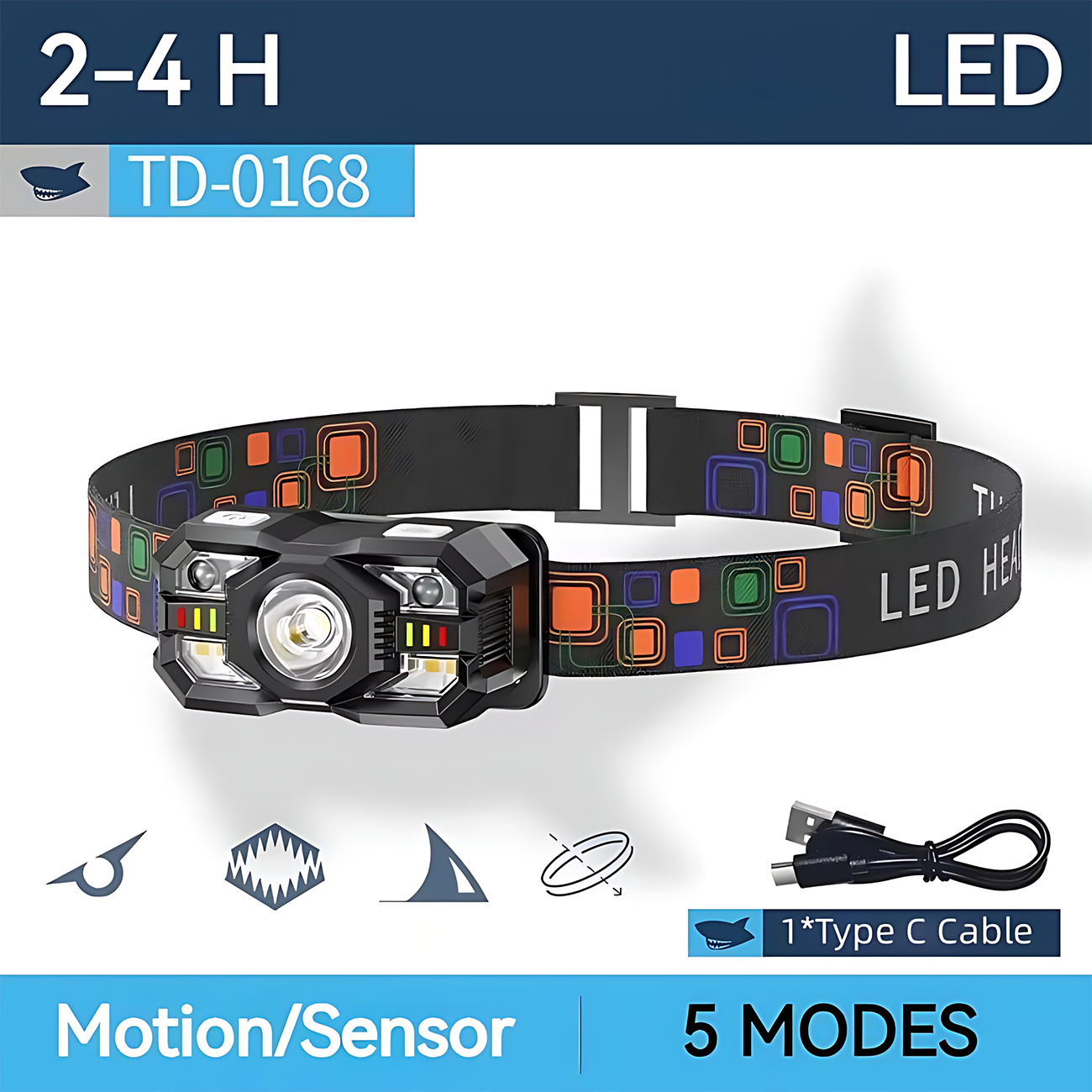هدلایت شارژی ضدآب اسمایلینگ شارک TD-0168