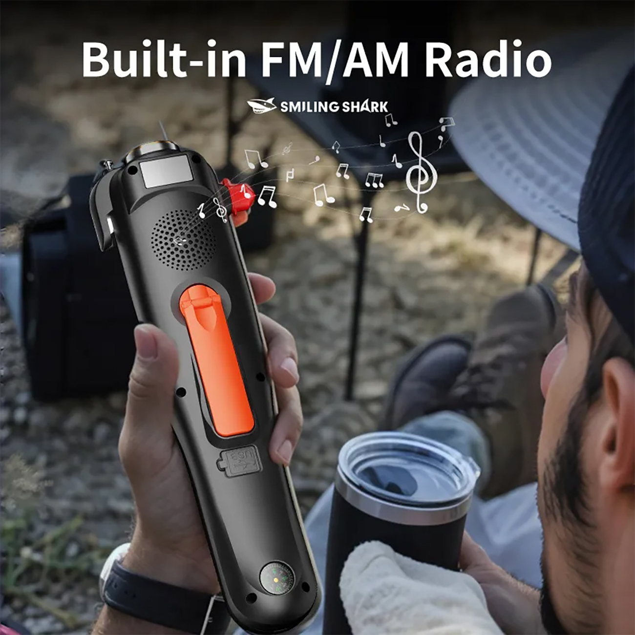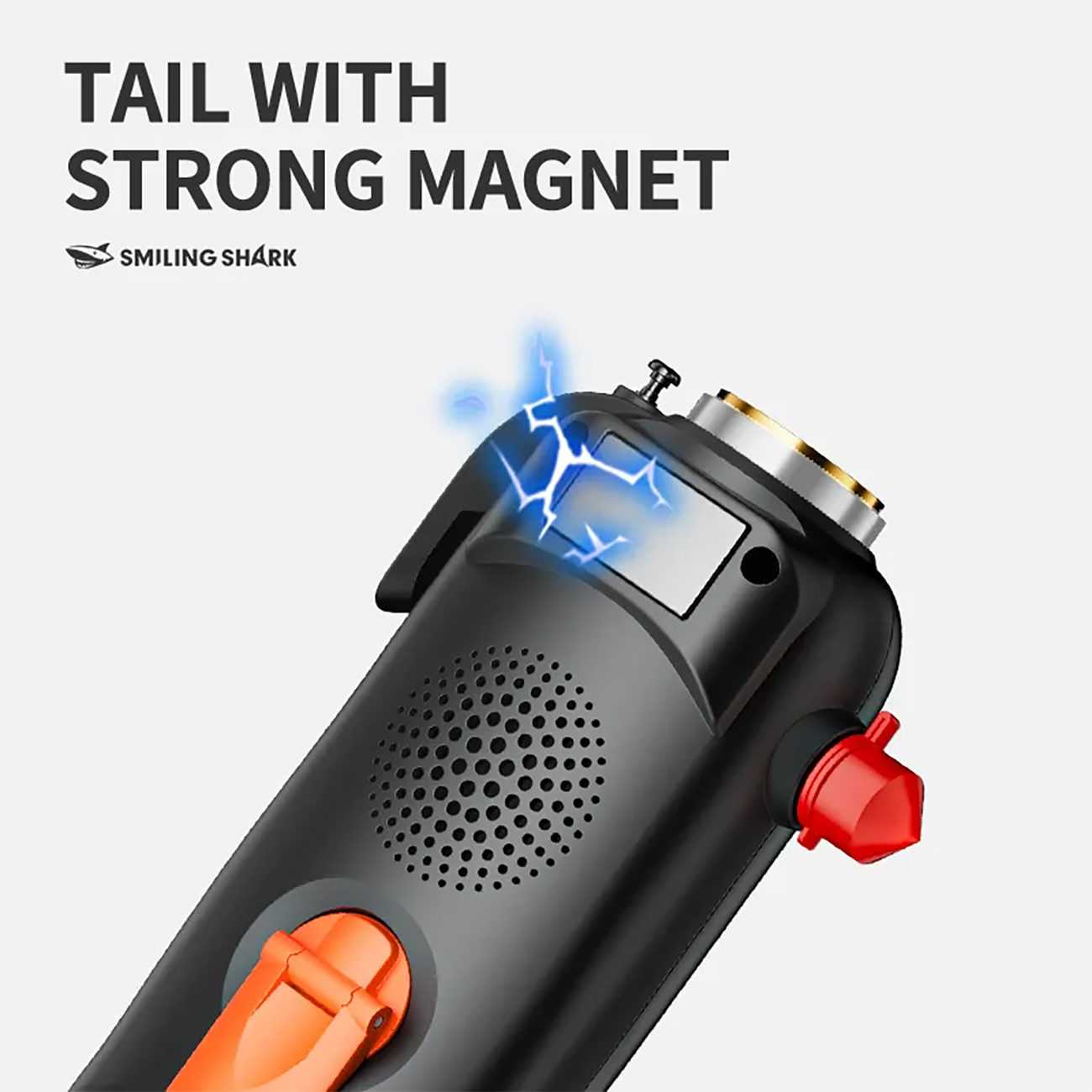 چراغ قوه مسافرتی اسمایلینگ شارک مدل YJD291 با 6 حالت، پاوربانک USB، ضدآب IPX6، قطبنما و شیشهشکن، انتخابی برتر برای ماجراجویی، تعمیرات یا اضطراره. این چراغ سبک (391 گرم) با باتری 10-12 ساعته و رادیو FM/AM، همهکاره و ایمنه.