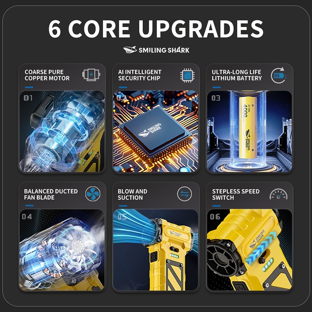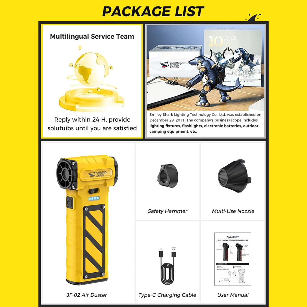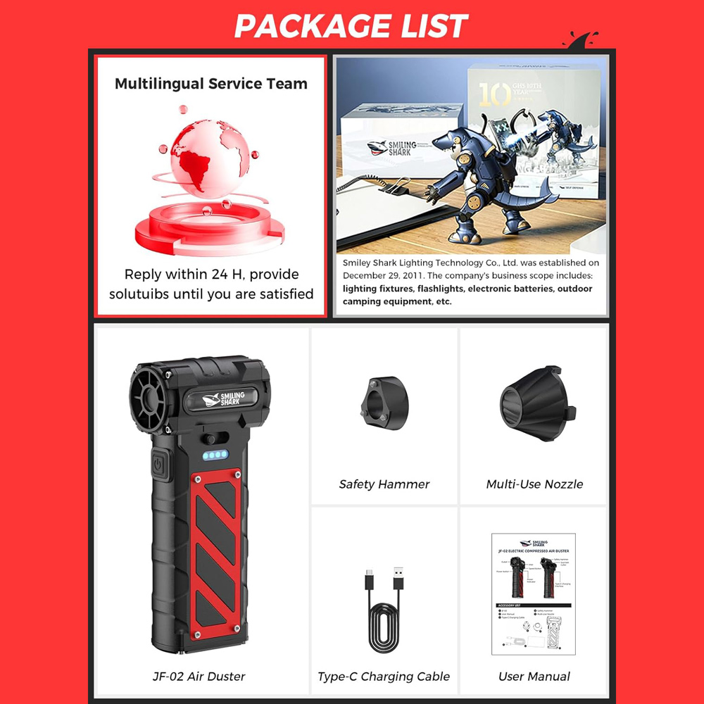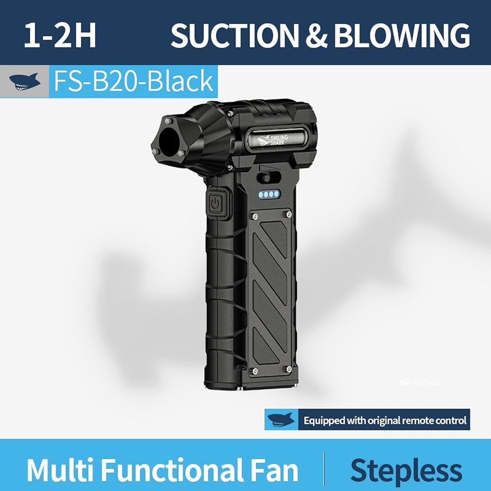 توربو فن دستی شارژی اسمایلینگ شارک مدل FSB20 با 110,000 RPM، کنترل سرعت، وزن 258 گرمی و باتری 8000mAh، انتخابی برتر برای تمیزکاری، خنک کردن یا کمپینگه. این دمنده بیسیم، همهکاره و ایمنه.