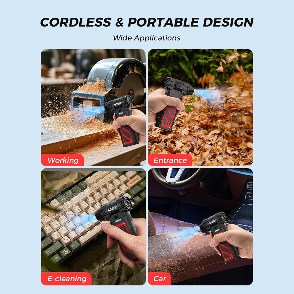 موتور توربینی با سرعت 110,000 RPM، جریان هوایی قوی و متمرکز تولید میکنه که گردوغبار، آلودگی یا حتی برف سبک رو بهراحتی جابهجا میکنه. این قدرت، FSB20 رو برای تمیزکاری عمیق در فضای باز یا داخل خودرو، گزینهای حرفهای میکنه—حتی در شرایط سخت، بدون افت عملکرد.