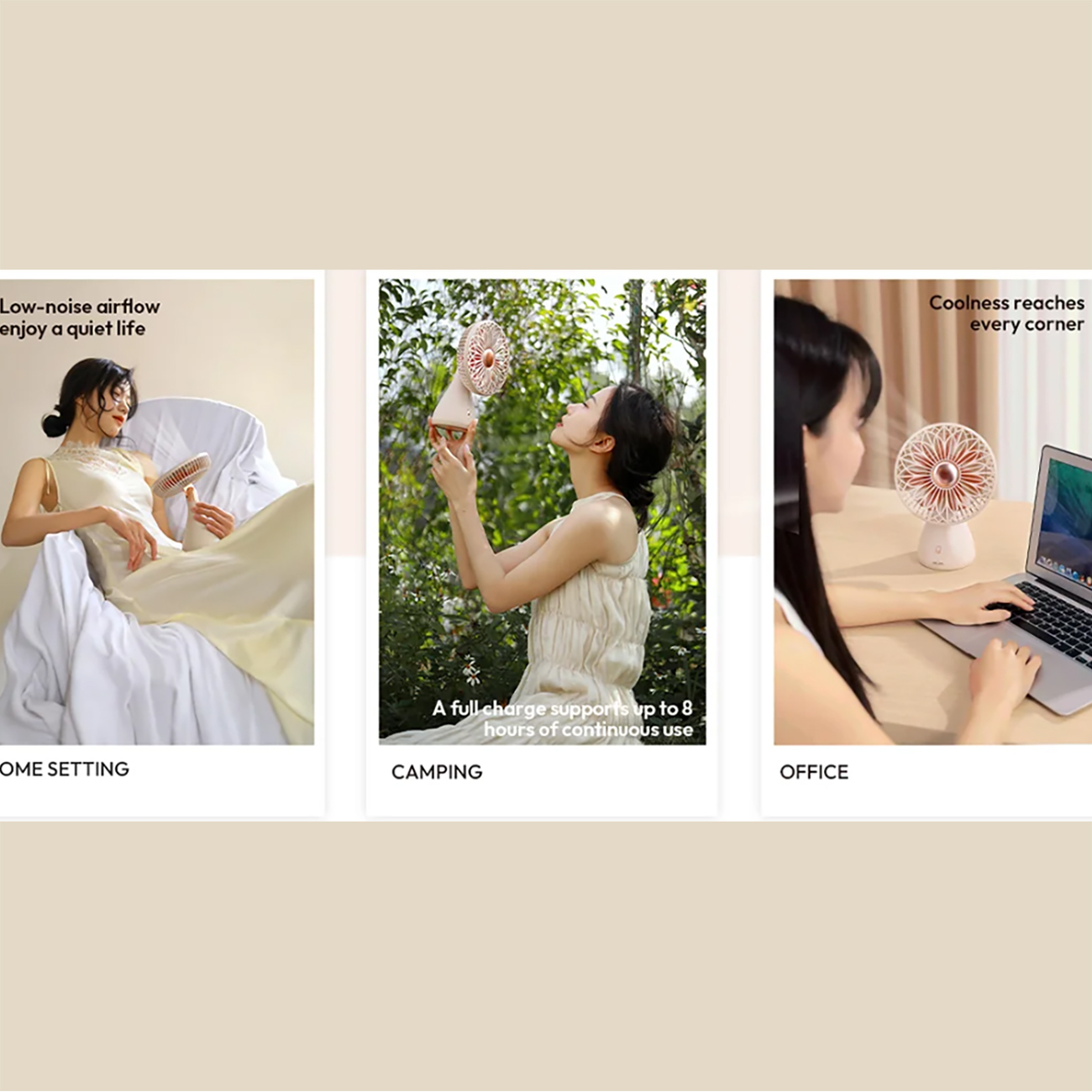 مینی پنکه قابل حمل شارژی Bridal Bouquet مدل 2113A با 7 پره بیومیمتیک، 3 سرعت، بیصدا 40-60dB و باتری 8 ساعته، انتخابی برتر برای خنکی جیبیه. این پنکه کرم رزگلد با وزن 225 گرمی و چرخش 160 درجه، همهجا همراهه.