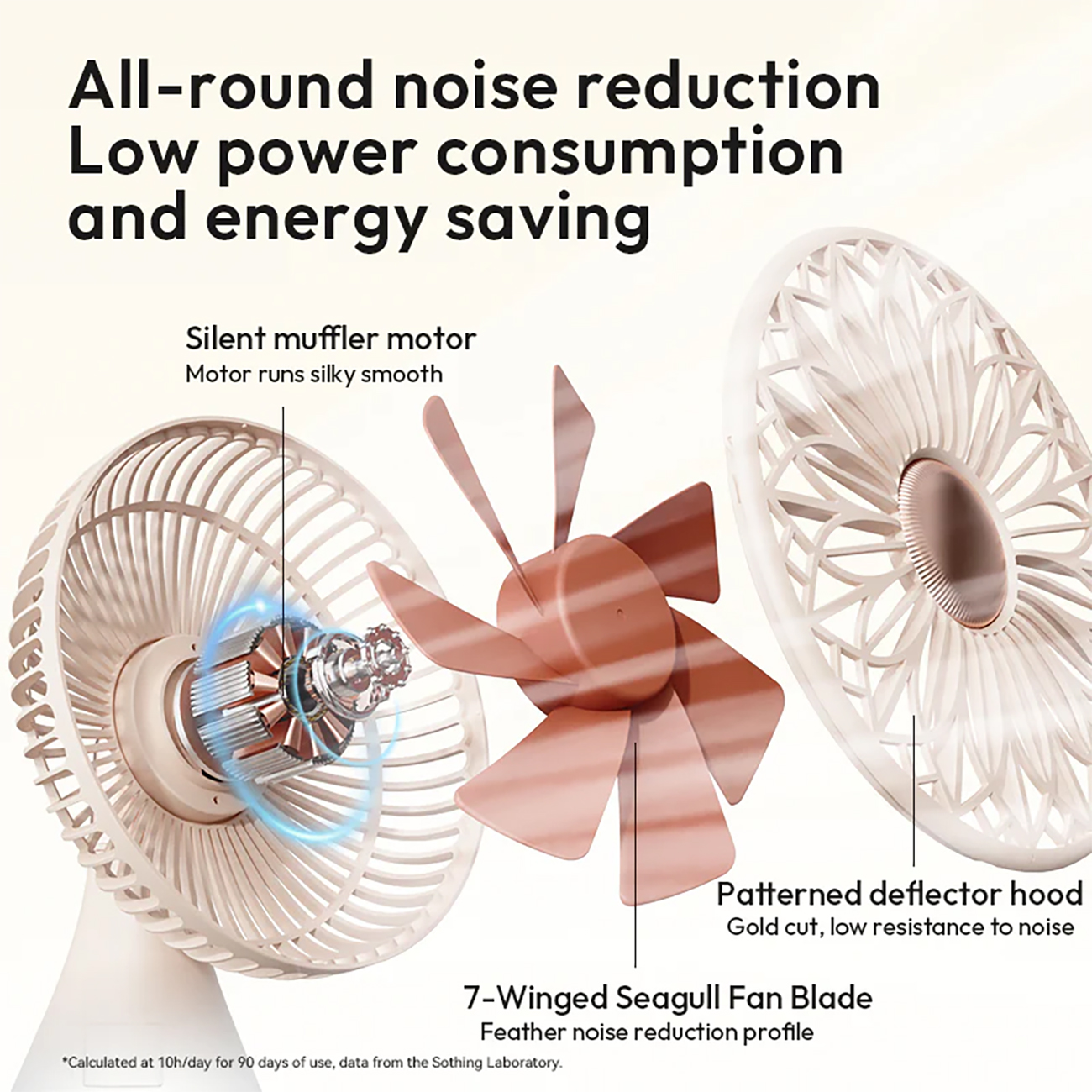 7 پره PP سبک با طراحی بیومیمتیک (تقلید از بال پروانه)، جریان هوا رو یکنواخت و طبیعی پخش میکنه—حس نسیم مزرعه رو بهتون میده. پوشش جلویی جدا شو، تمیز کردن رو آسون میکنه و پرهها رو همیشه نو نگه میداره—بدون تجمع گردوغبار.