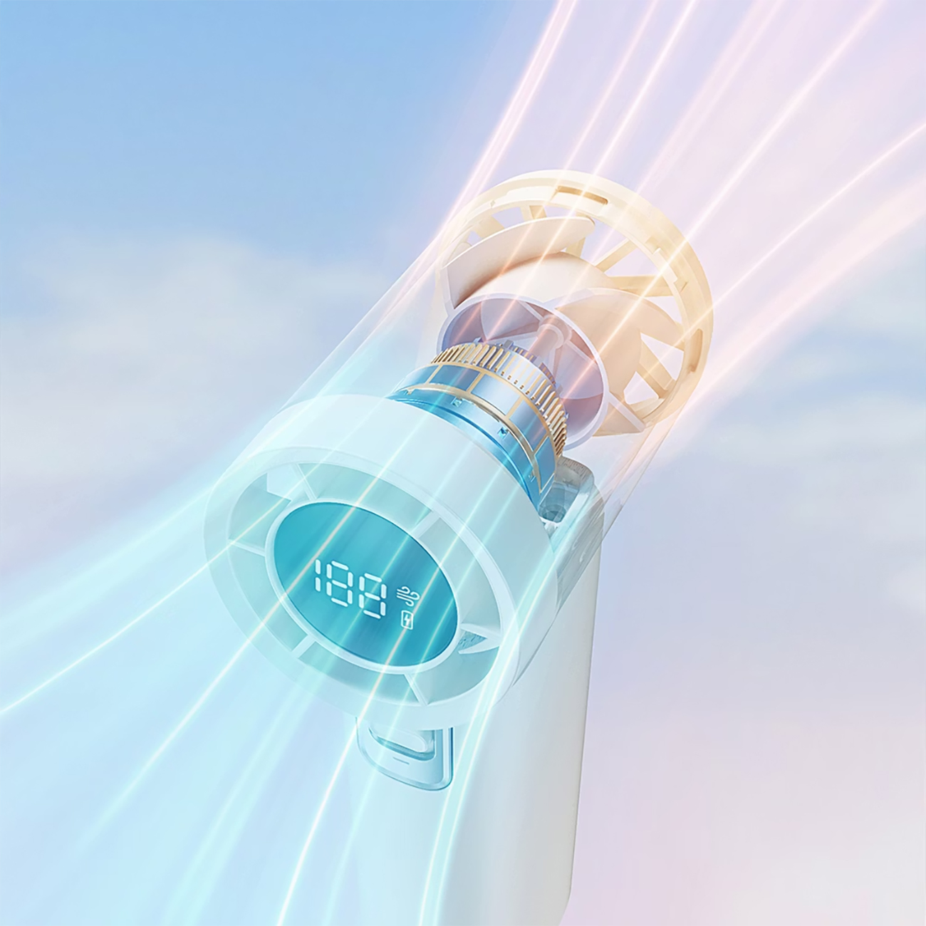 از ویژگیهای قابل توجه و کاربرپسند پنکه قابل حمل شارژی 2025، امکان انتخاب باد از بین 100 سطح مختلف است، از نسیم ملایم تا باد شدید و قدرتمند. این قابلیت فوقالعاده باعث میشود هر فرد با توجه به سلیقه و نیاز خود، شدت باد را تنظیم کند.