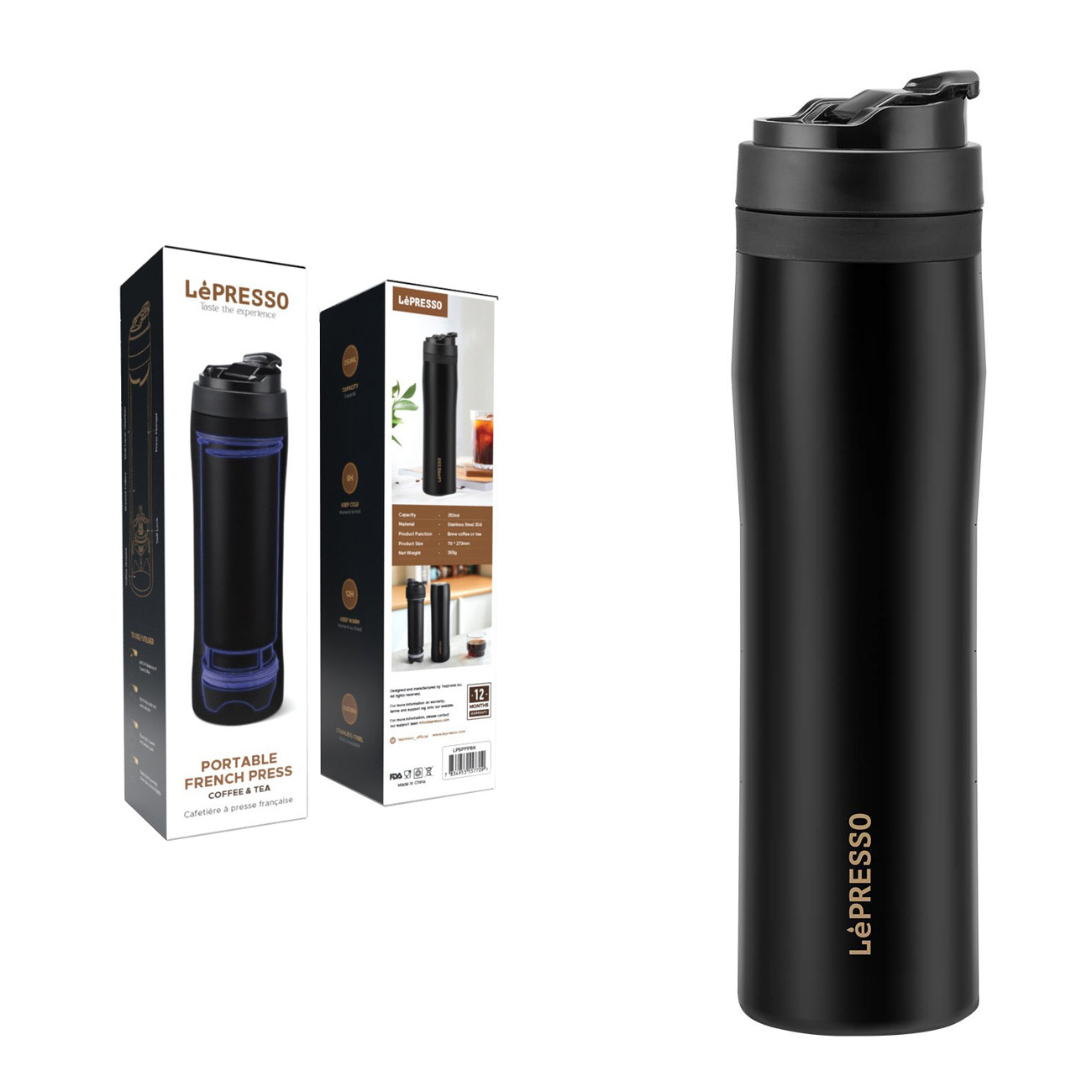 فرنچ پرس پرتابل استیل LePresso مدل LPSPFPBK - کافیشاپ سیار شما در هر نقطه از جهان!