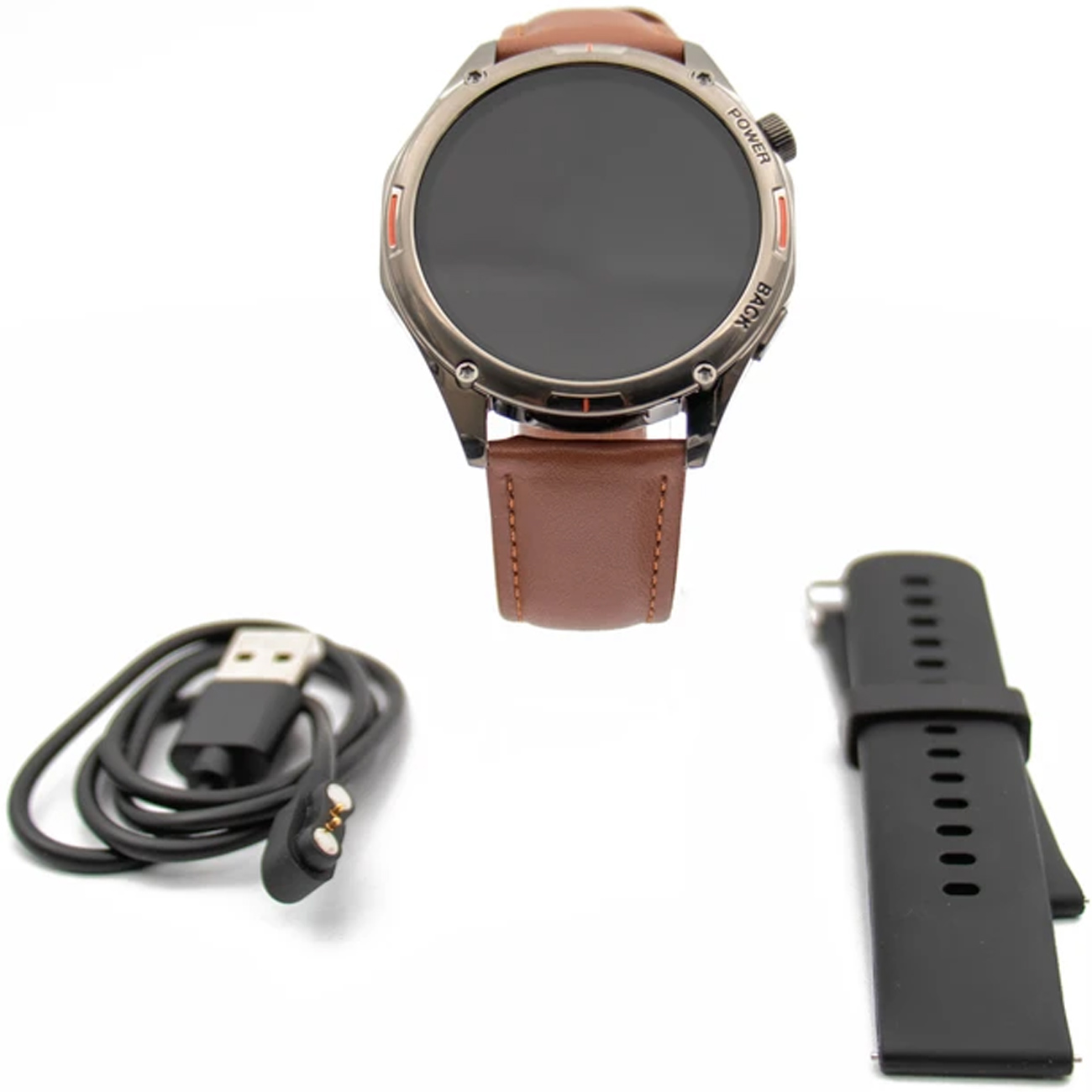 بندهای قابل تعویض: شامل بند سیلیکونی و چرمی برای شخصیسازی ظاهر بر اساس سلیقه یا مناسبت.