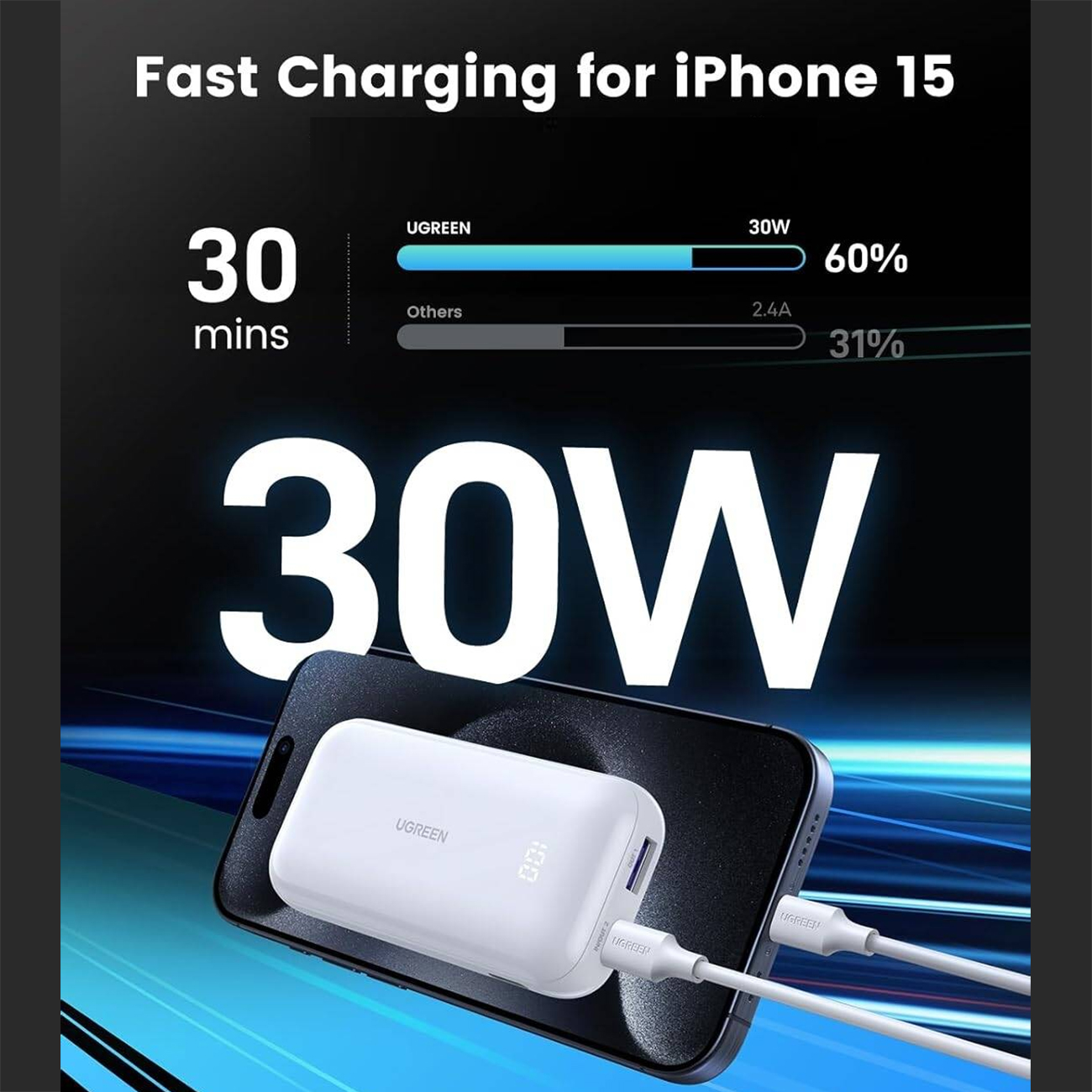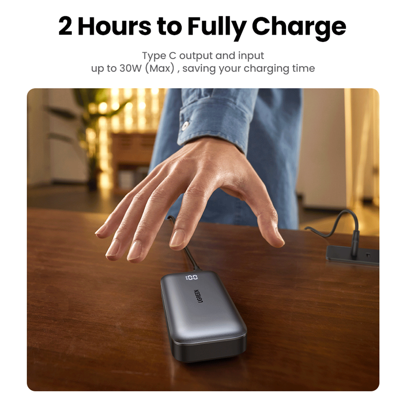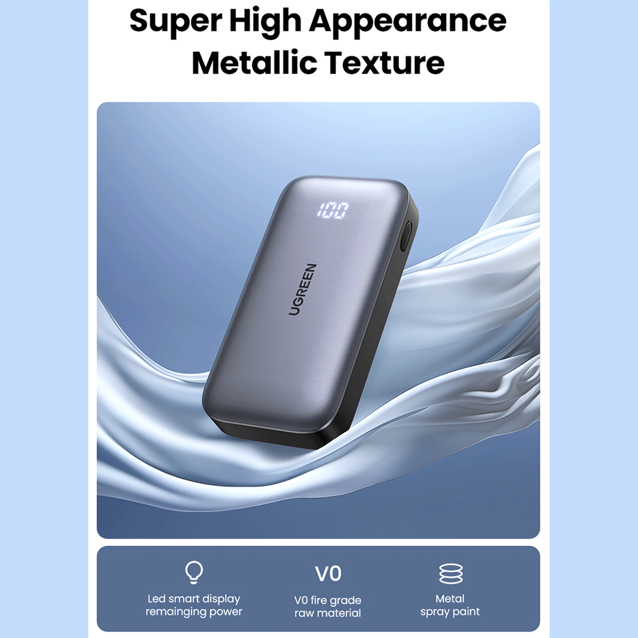 شارژر همراه جیبی یوگرین مدل PB501 25189 با ظرفیت ۱۰۰۰۰ میلیآمپر ساعت: قدرتی فشرده و سریع در کف دست