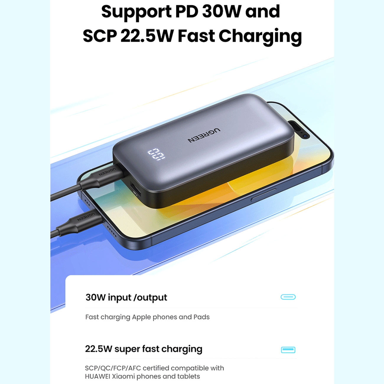 یکی از مهمترین ویژگیها در انتخاب یک پاوربانک، سرعت شارژ آن است. اهمیت به این موضوع نه تنها در وقت شما صرفهجویی میکند، بلکه با کاهش زمان اتصال به برق، به سلامت باتری دستگاههای شما نیز کمک مینماید. شارژر همراه یوگرین مدل PB501 با حداکثر توان ۳۰ وات و پشتیبانی از فناوریهای پیشرفته شارژ سریع Power Delivery 3.0 (PD 3.0) و Quick Charge 4.0 (QC 4.0)، قادر است دستگاههای سازگار را با بالاترین سرعت ممکن شارژ نماید.
