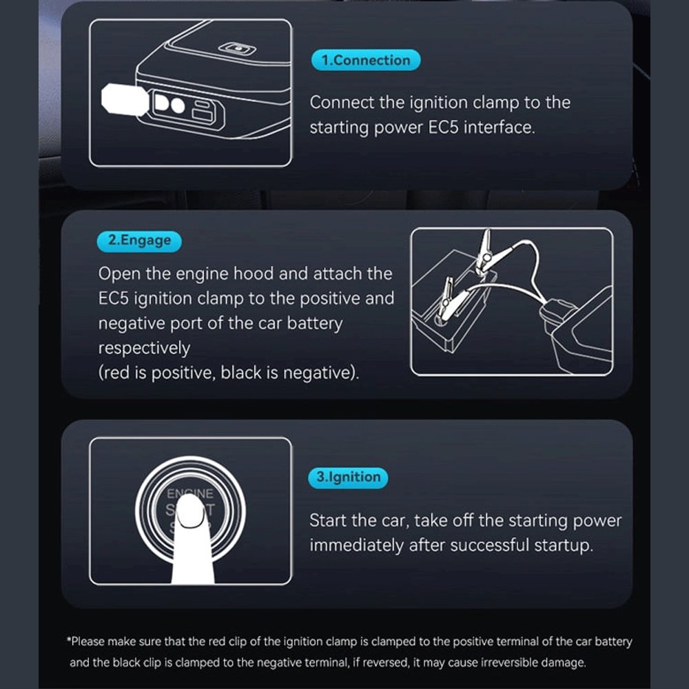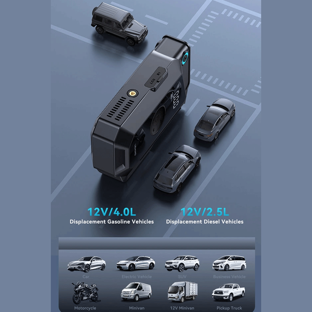 این جامپ استارتر قادر است خودروهای بنزینی با موتور تا 4 لیتر و دیزلی تا 2.5 لیتر را با جریان شروع 500 آمپر و جریان پیک 1000 آمپر روشن کند. این قدرت تضمین میکند که در هر شرایط آبوهوایی و در هر موقعیتی، استارت سریع و مطمئنی داشته باشید—حتی در سرما یا باتریهای کاملاً خالی.