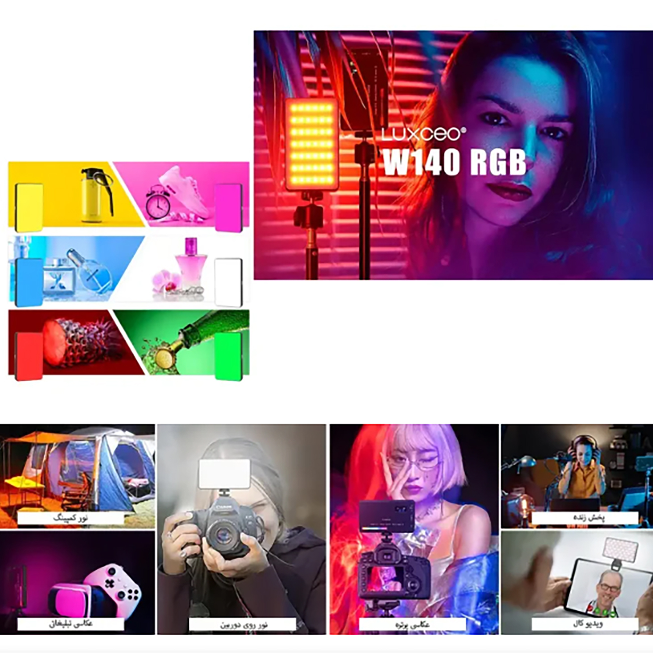 در دنیای تولید محتوا، عکاسی و فیلمبرداری، نور تنها یک ابزار نیست؛ یک زبان است. نور ثابت RGB مدل W140 از برند سانپک (Sunpak)، یک استودیوی نورپردازی کامل را در کف دست شما قرار میدهد. این چراغ حرفهای و قابل حمل که به سادگی روی دوربین یا سهپایه نصب میشود، با بهرهگیری از طیف رنگی کامل RGB، قابلیت تنظیم دقیق رنگ، شدت نور و دمای رنگ (Color Temperature)، این قدرت را به شما میدهد که نور دلخواه و ایدهآل خود را با حداکثر دقت و خلاقیت بسازید.