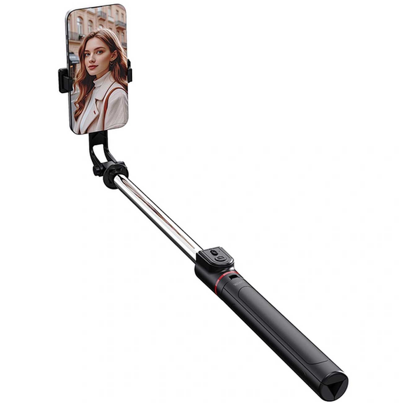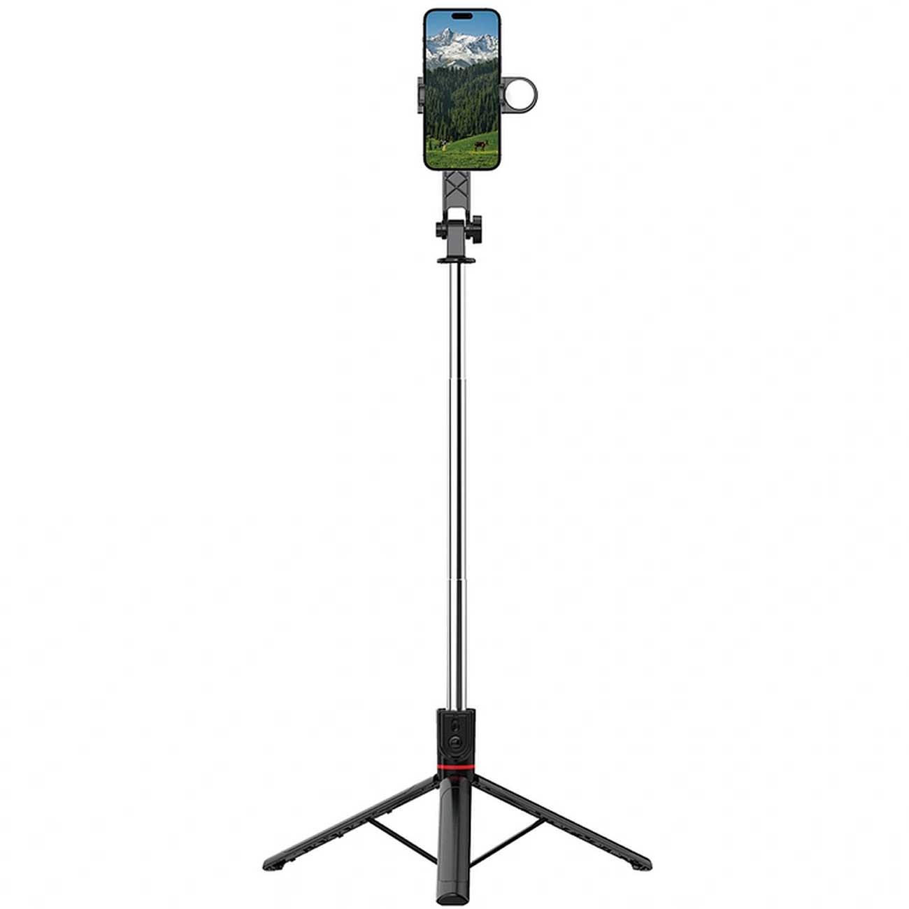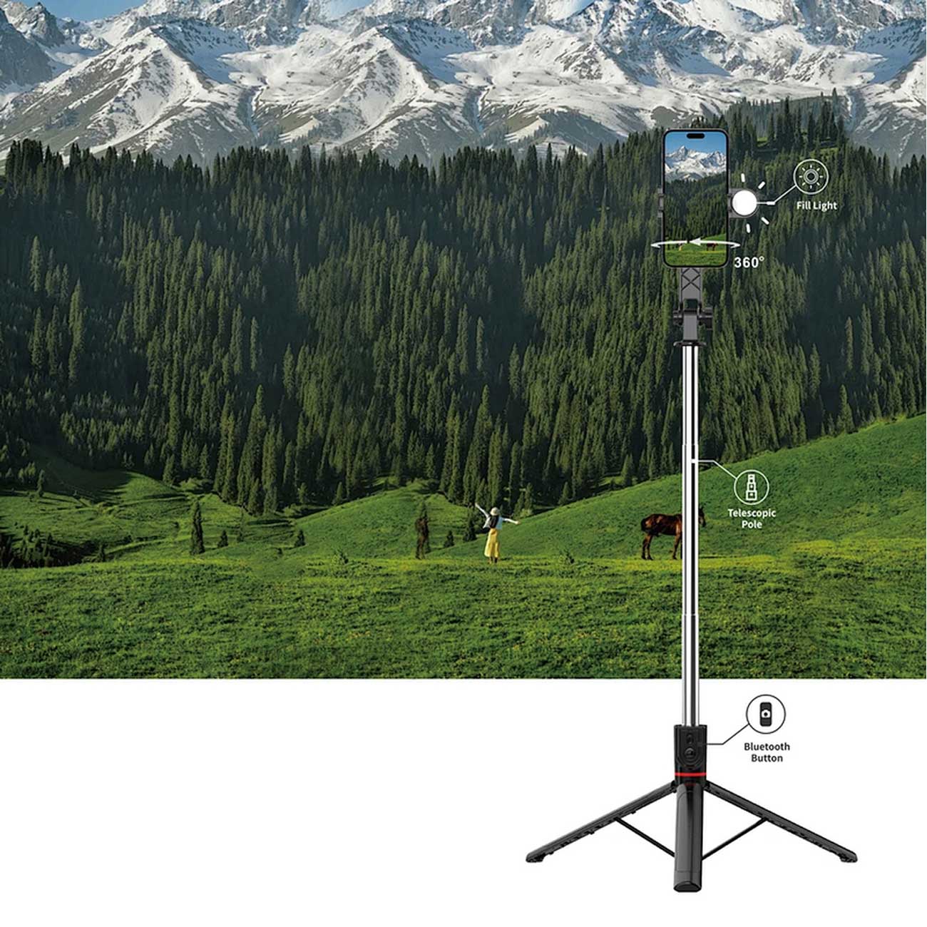ارتفاع 1.8 متری این دسته سلفی، آزادی عمل فوقالعادهای در اختیار شما قرار میدهد. وقتی پایه کاملاً باز میشود، دوربین از سطح دید طبیعی انسان بالاتر قرار میگیرد که برای ثبت ویدئوهای تمامقد، شاتهای نمای باز، فیلمبرداری معرفی محصول یا تولید محتوای بلاگری ایدهآل است.