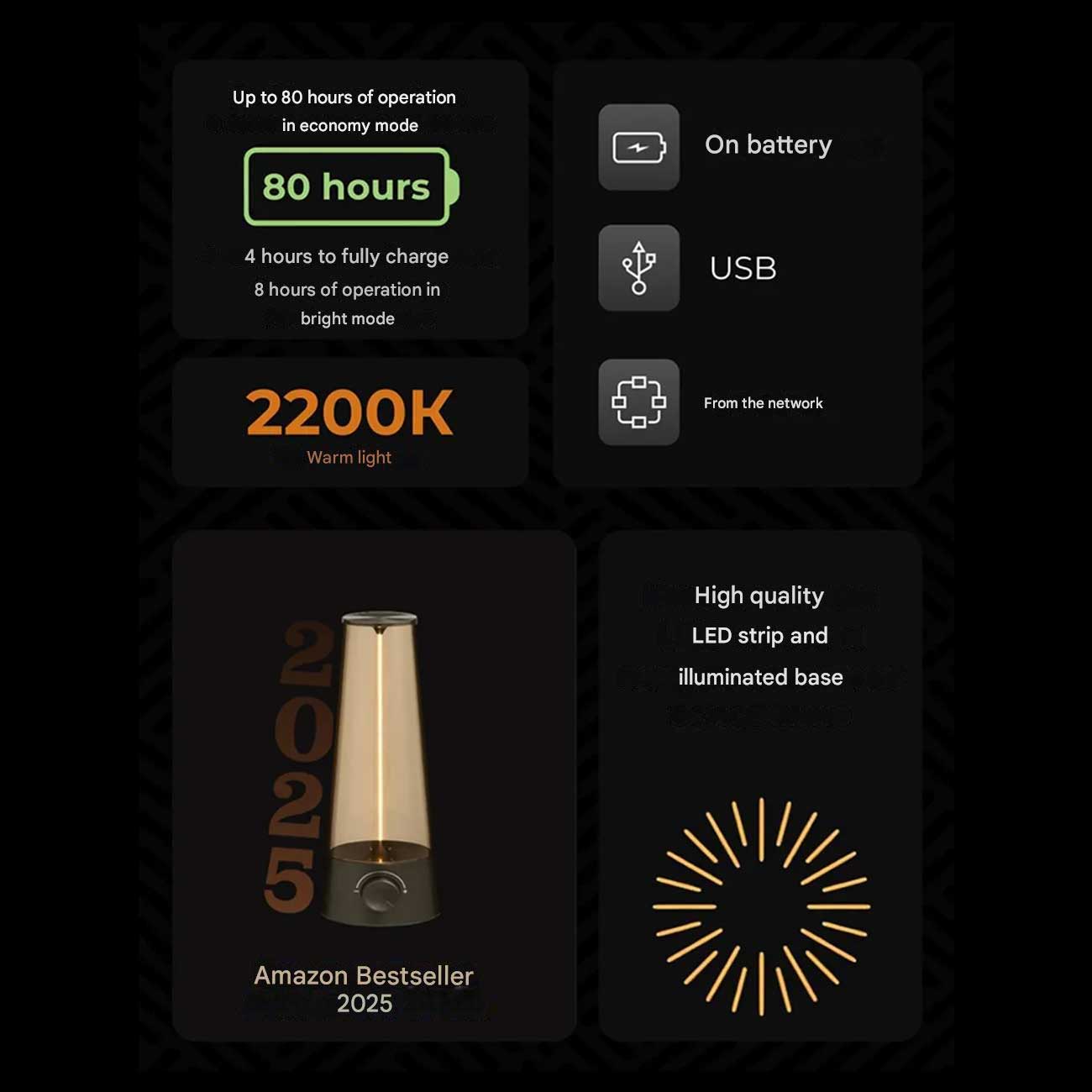 این لامپ با بدنه ABS+PMMA+آلومینیوم مقاوم، تنظیم روشنایی نامحدود و باتری 1800mAh (تا 160 ساعت کمنور)، محافظ چشم و دکور مدرنه. اگه به دنبال چراغی هستی که هم کاربردی باشه، هم به اتاقت جلوه بده و هم با دمای 2200K گرم، آرامش بیاره، WB-5 بهترین گزینهته.