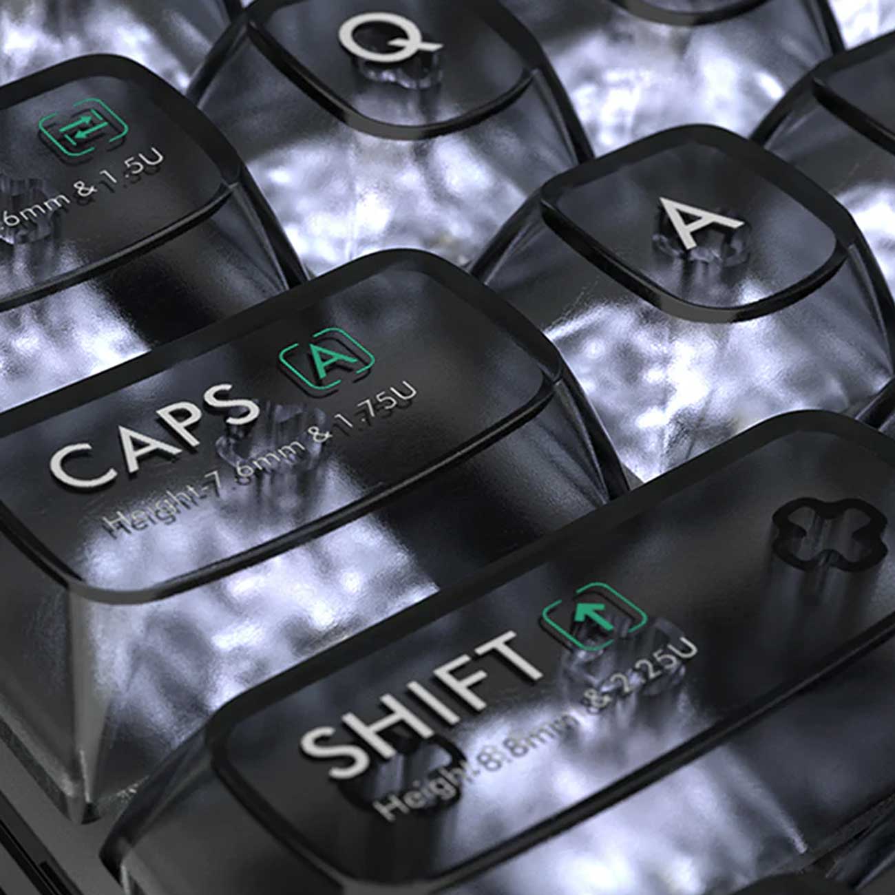 | طراحی ساخت | Gasket Mount، بدنه نیمهشفاف مشکی |
