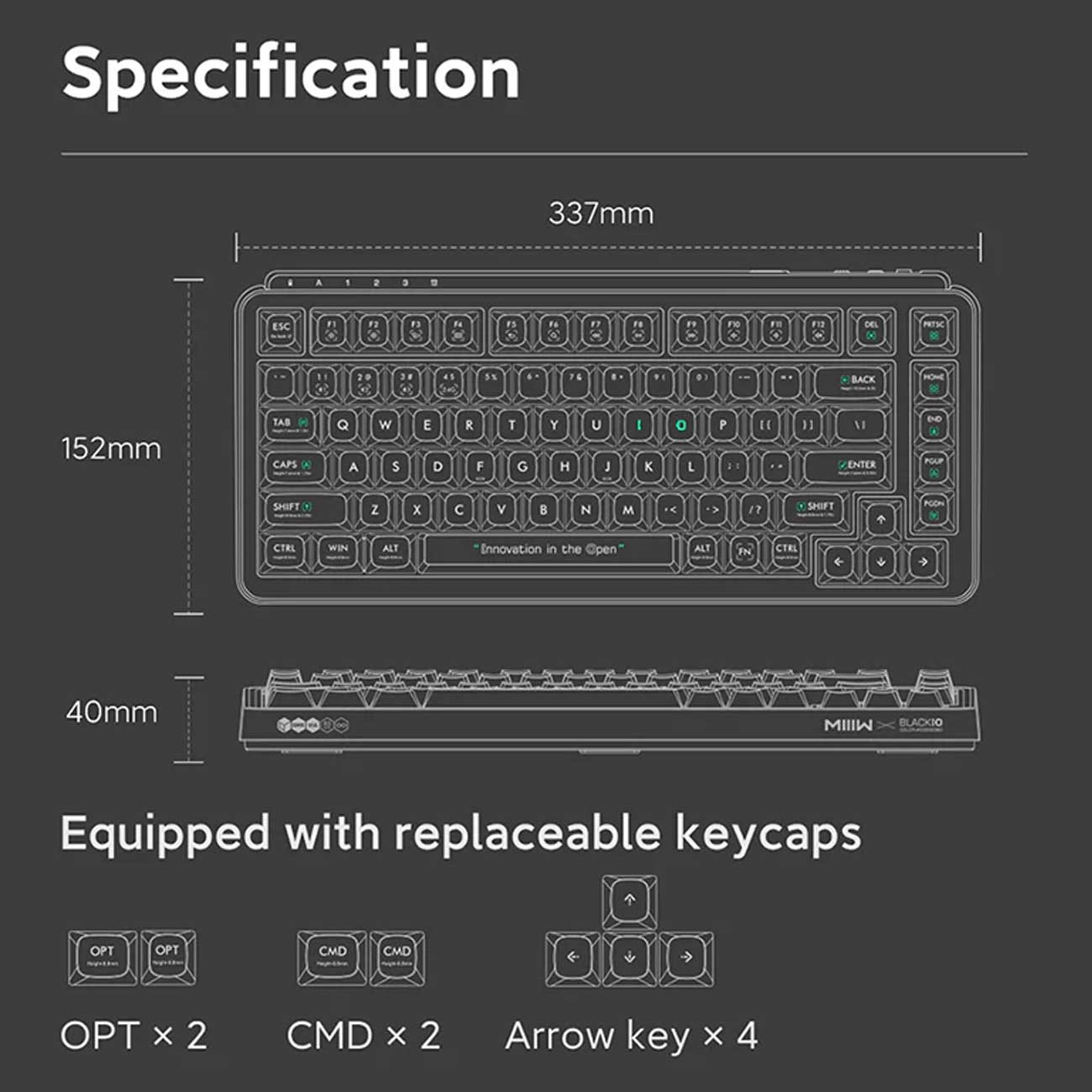 کیبورد بلوتوثی گیمینگ شیائومی MIIIW BLACK IO 83 Keys مدل Space Gold (MWMKB04) یک شاهکار مهندسی است که با طراحی نوآورانه، عملکرد حرفهای و قابلیتهای پیشرفته، نیازهای گیمرها، برنامهنویسان و تایپیستهای حرفهای را به بهترین شکل برآورده میکند. این کیبورد با سوئیچهای Kailh Jellyfish، نورپردازی RGB، باتری قدرتمند و قابلیت برنامهریزی کامل، نه تنها ابزاری کاربردی، بلکه یک اثر هنری روی میز شماست.
