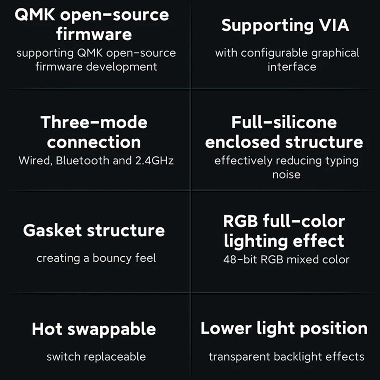 با پشتیبانی از نرمافزارهای متنباز QMK و VIA و استفاده از چیپست قدرتمند ST، این کیبورد به شما آزادی کامل برای برنامهریزی کلیدها و تعریف لایههای سفارشی میدهد. چه گیمر باشید و چه برنامهنویس، میتوانید هر کلید را دقیقاً مطابق نیازهایتان تنظیم کنید.
