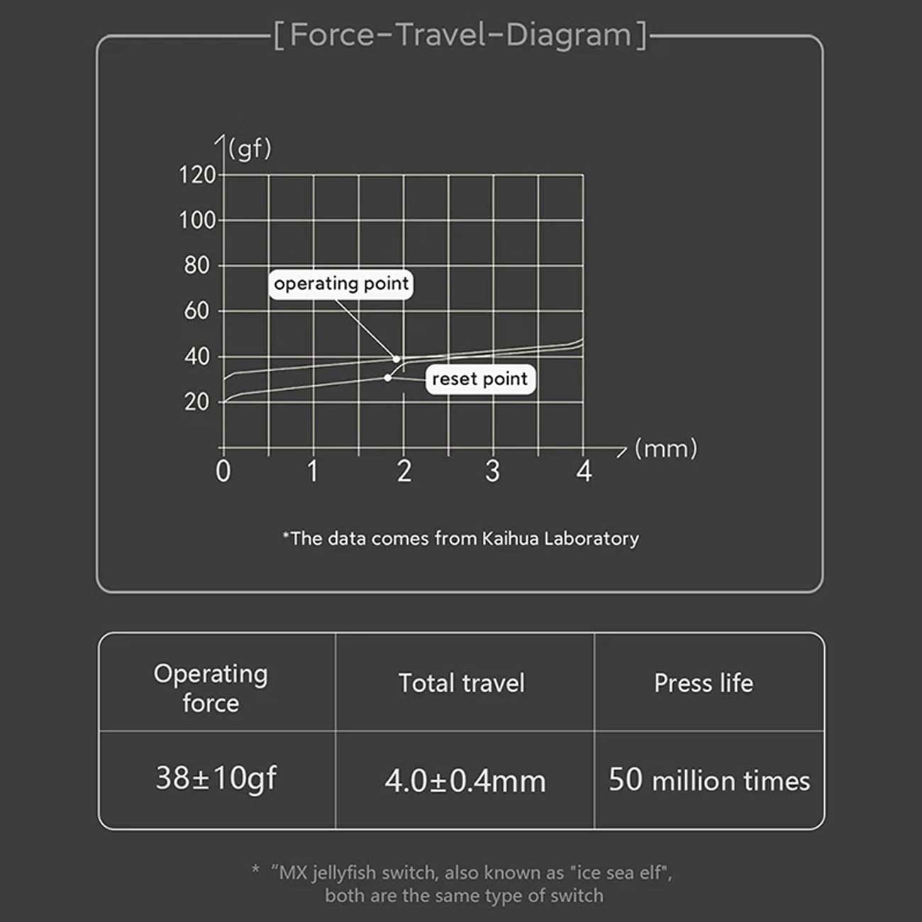 مجهز به سوئیچهای Kailh Jellyfish شفاف با ویژگی Self-lubricating، این کیبورد عملکردی نرم و سریع ارائه میدهد. با Pretravel 1.9±0.5 میلیمتر و فشار عملکرد 48±10 gf، این سوئیچها برای تایپ سریع و اجرای دقیق دستورات در بازیها بهینه شدهاند. دوام 50 میلیون بار فشردهسازی، این کیبورد را به گزینهای مطمئن برای استفاده طولانیمدت تبدیل کرده است.