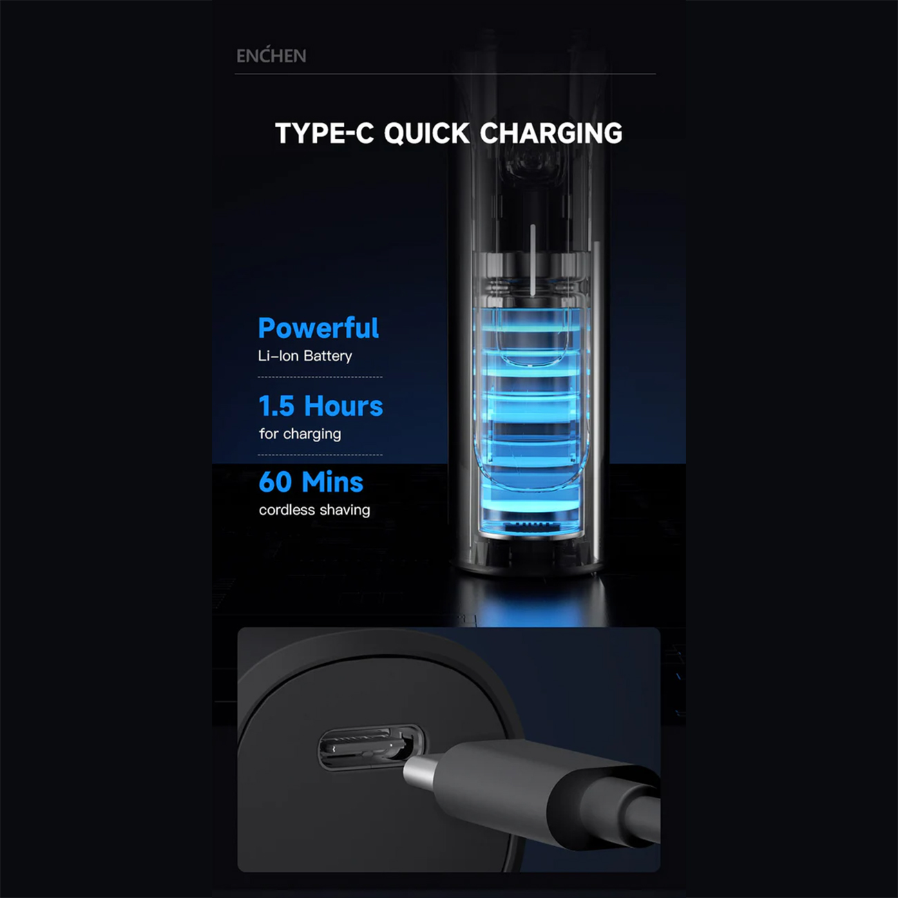 این ریشتراش دارای یک باتری لیتیوم-یونی است که از طریق درگاه مدرن Type-C شارژ میشود.