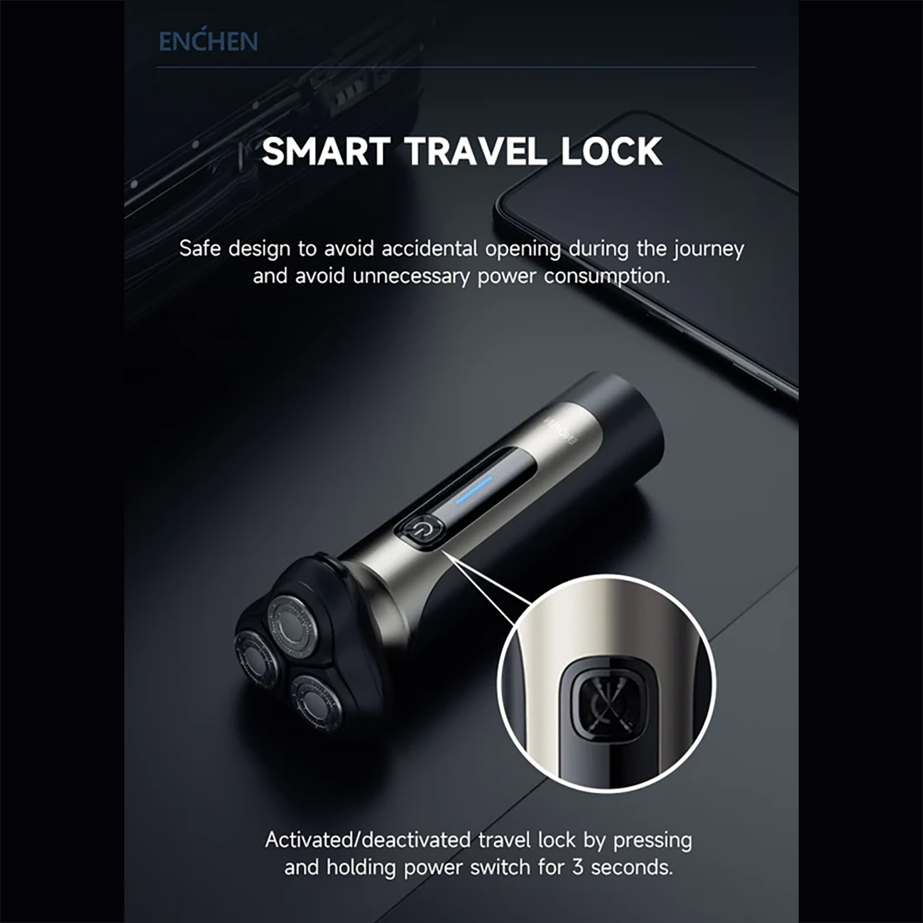 قفل مسافرتی: با فعالسازی این قابلیت، از روشن شدن تصادفی دستگاه در داخل کیف یا چمدان و اتلاف باتری جلوگیری میشود. فعالسازی و غیرفعالسازی آن با نگه داشتن دکمه پاور به مدت چند ثانیه انجام میشود.