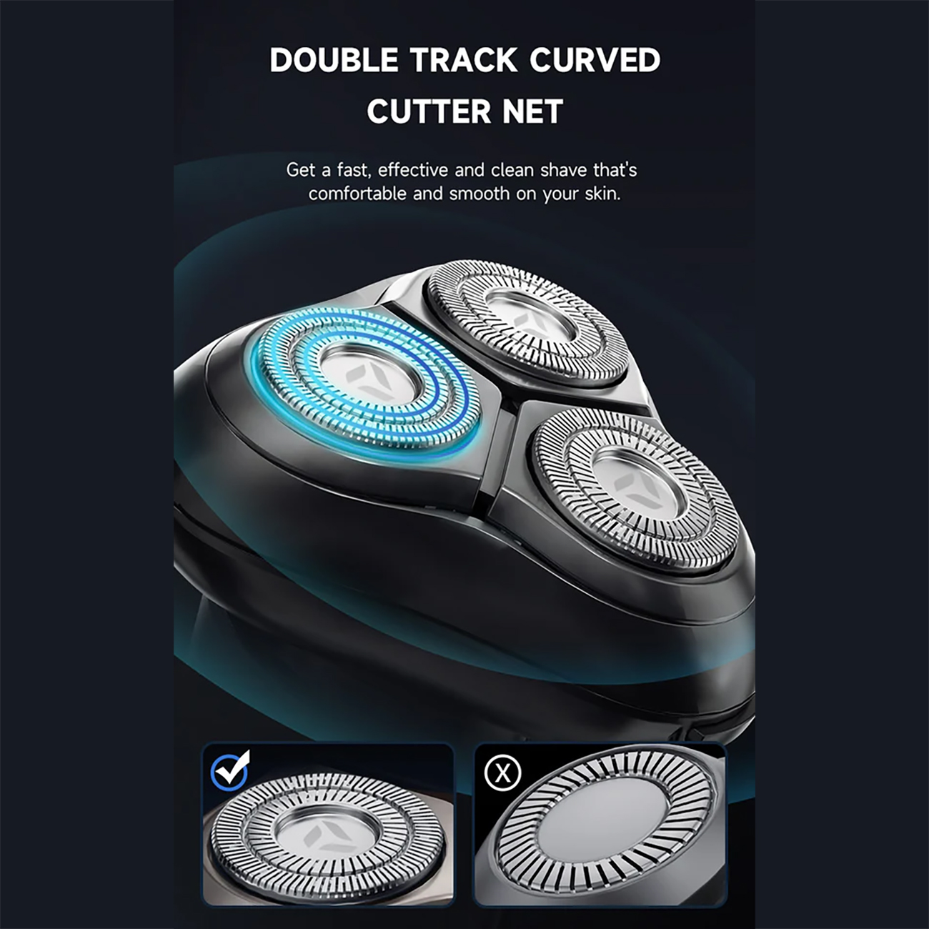 توری قوسی دو-مسیره: شبکه تیغهها با طراحی قوسی و دو-مسیره، به طور کامل با انحنای صورت منطبق شده و موها را از دو جهت مختلف میگیرد. نتیجه این تکنولوژی، اصلاحی عمیقتر، سریعتر و با حداقل تماس مجدد با پوست است.