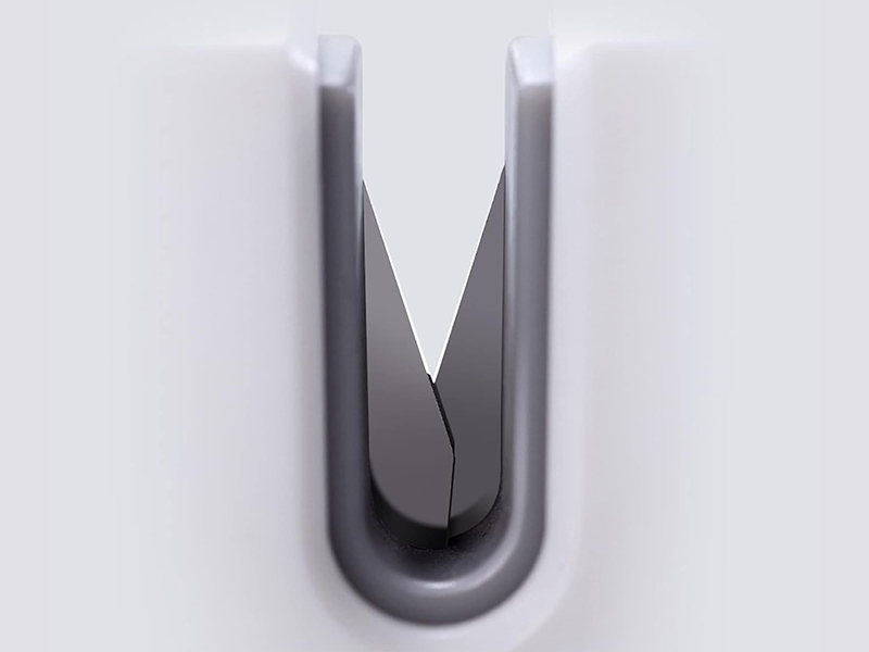 برای تیز کردن چاقو کافی است آن را داخل یکی از سه شیار V شکل قرار داده و بین ۳ تا ۷ بار بهآرامی حرکت رفت و برگشتی انجام دهید. توجه داشته باشید فشار بیش از حد وارد نکنید، زیرا این کار میتواند هم به تیغه چاقو و هم به خود دستگاه آسیب بزند. طراحی ارگونومیک این شیارها با هدف کاهش اصطکاک و افزایش قدرت برش انجام شده تا با کمترین زحمت، چاقویی تیز و آماده داشته باشید.