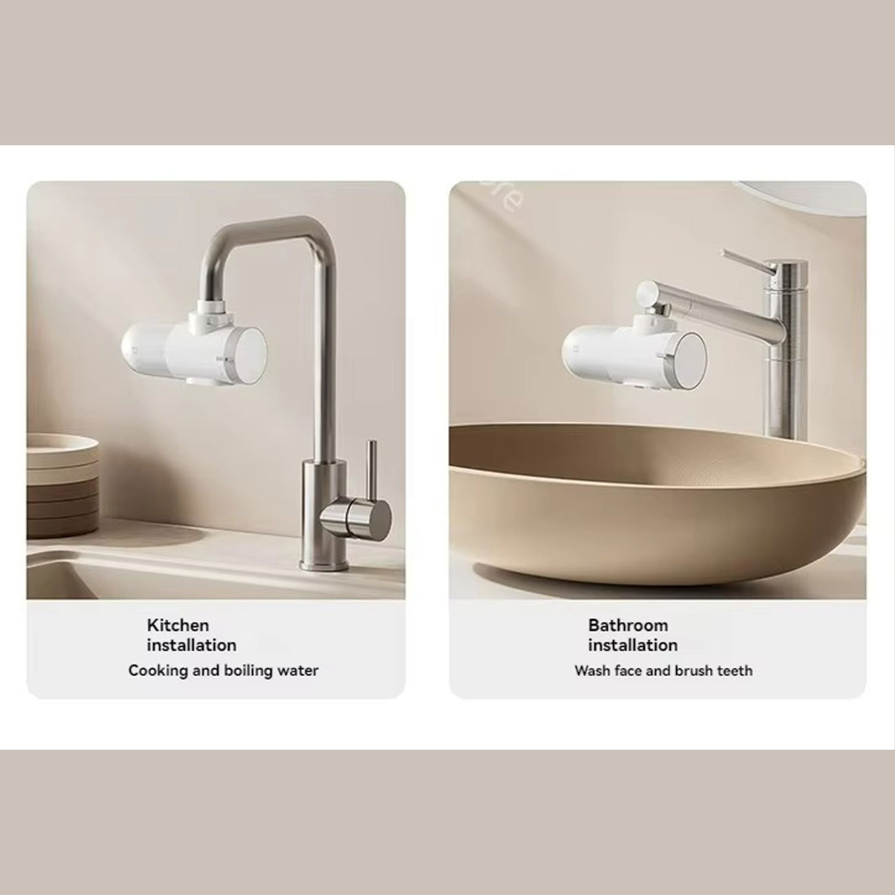 نصب بسیار آسان: در ۳ مرحله ساده و بدون نیاز به ابزار خاص یا برق، بر روی شیرهای معمولی با قطر دهانه ۱۵ تا ۲۳ میلیمتر نصب میشود.