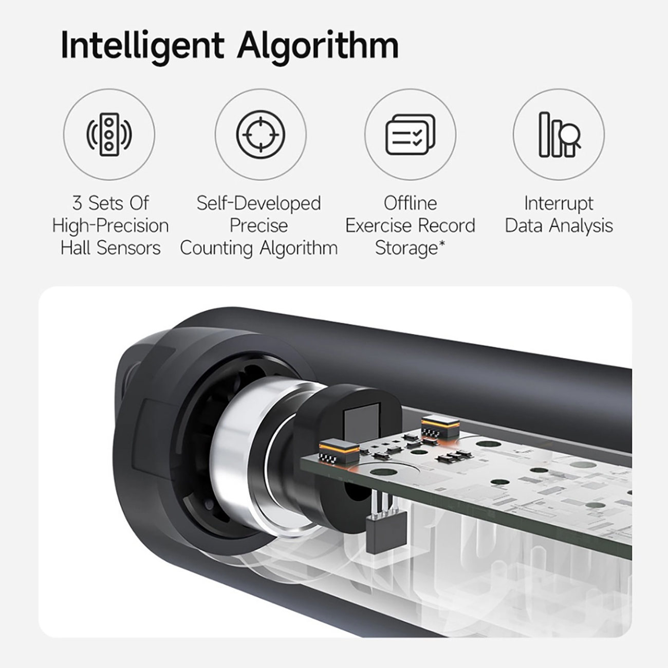 این طناب از جدیدترین نسخه بلوتوث 5.1 بهره میبرد که اتصال سریع، پایدار و بدون قطعی را تضمین میکند. حسگرهای پیشرفته و الگوریتمهای اختصاصی شمارش، حتی در تمرینات بسیار سریع، اینتروال و HIIT هم دقت 99% را حفظ میکنند و خطای شمارش را تقریباً به صفر میرسانند.