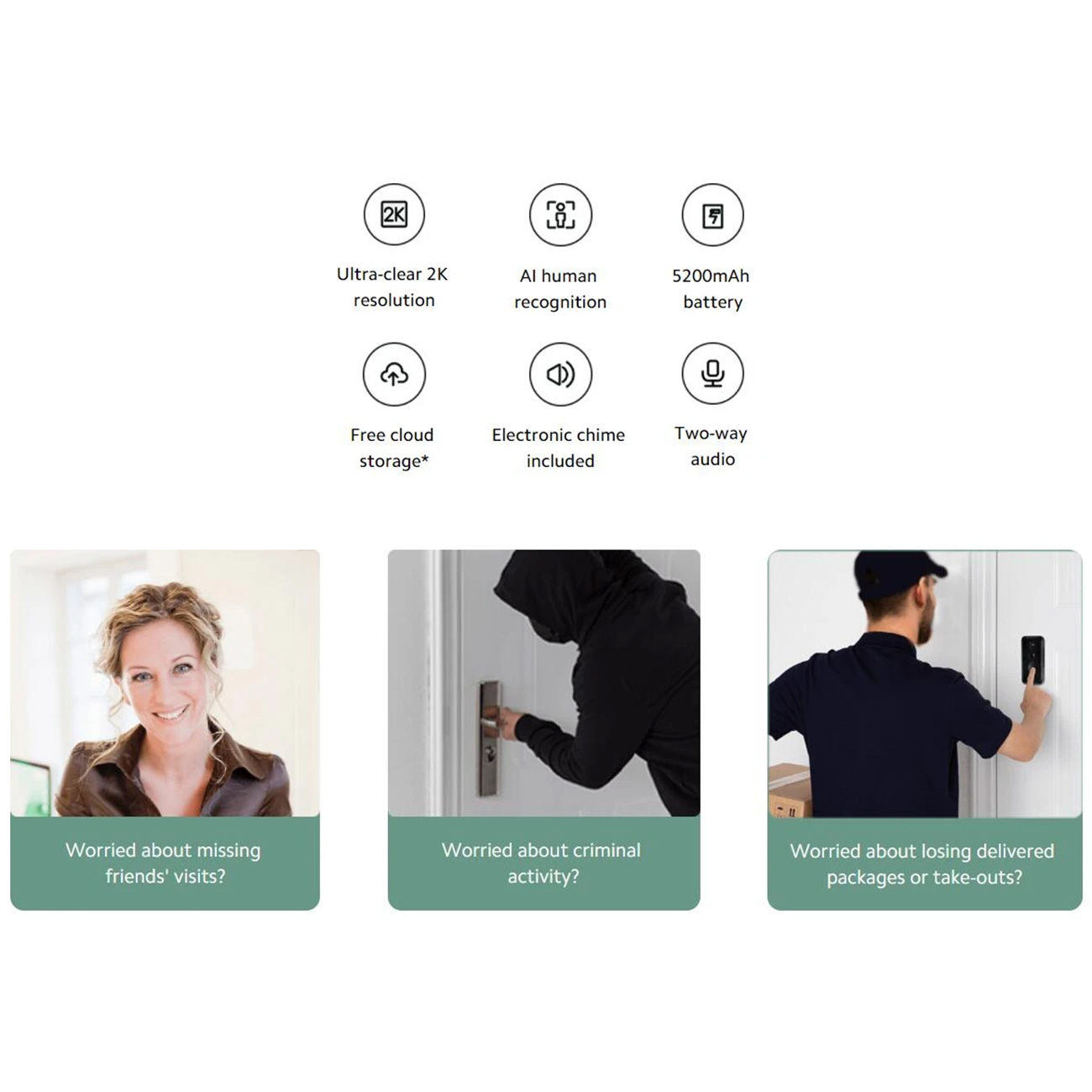 با کیفیت تصویر 2K، تشخیص هوشمند انسان، باتری با دوام چندماهه و ذخیرهسازی ابری رایگان، این محصول تمام آنچه را که برای کنترل و امنیت ورودی خانه نیاز دارید، در قالب طراحی زیبا و نصب آسان ارائه میدهد.