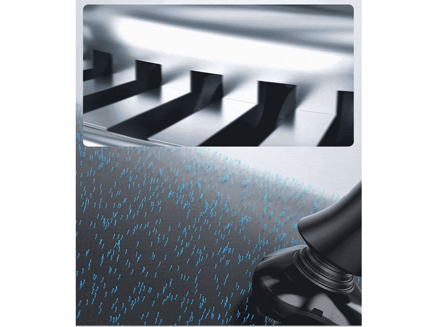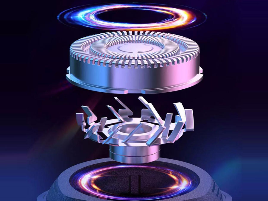 این دستگاه مجهز به سه سری تیغه مستقل با لبههای ظریف و تیز است که قابلیت جدا شدن برای شستشوی کامل را دارا میباشند. برای هر تیغه، حلقههای توری دوتایی در نظر گرفته شده که فاصله ایمن بین پوست و تیغه را حفظ کرده و از هرگونه آسیب به پوست جلوگیری میکند. سیستم تعلیق این ریشتراش به صورت شناور سهبعدی طراحی شده که به تیغهها امکان حرکت مستقل و تطبیق با فرم منحنیهای صورت را میدهد. این قابلیت، اصلاح 360 درجه در تمامی نقاط صورت را ممکن میسازد.