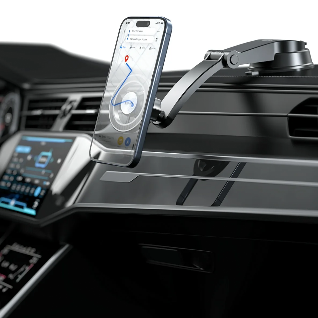 مکانیزم چرخشی 360 درجه، گوشی رو در هر زاویهای—عمودی برای تماسها، افقی برای نقشه یا مورب برای موسیقی—قرار میده. این آزادی عمل، بهترین دید رو بدون مزاحمت برای رانندگی فراهم میکنه و برای مسیریابی از گوگل مپس یا واتساپ، فوقالعاده است. تنظیم ساده و بدون ابزار، هولدر رو همیشه آماده نگه میداره.