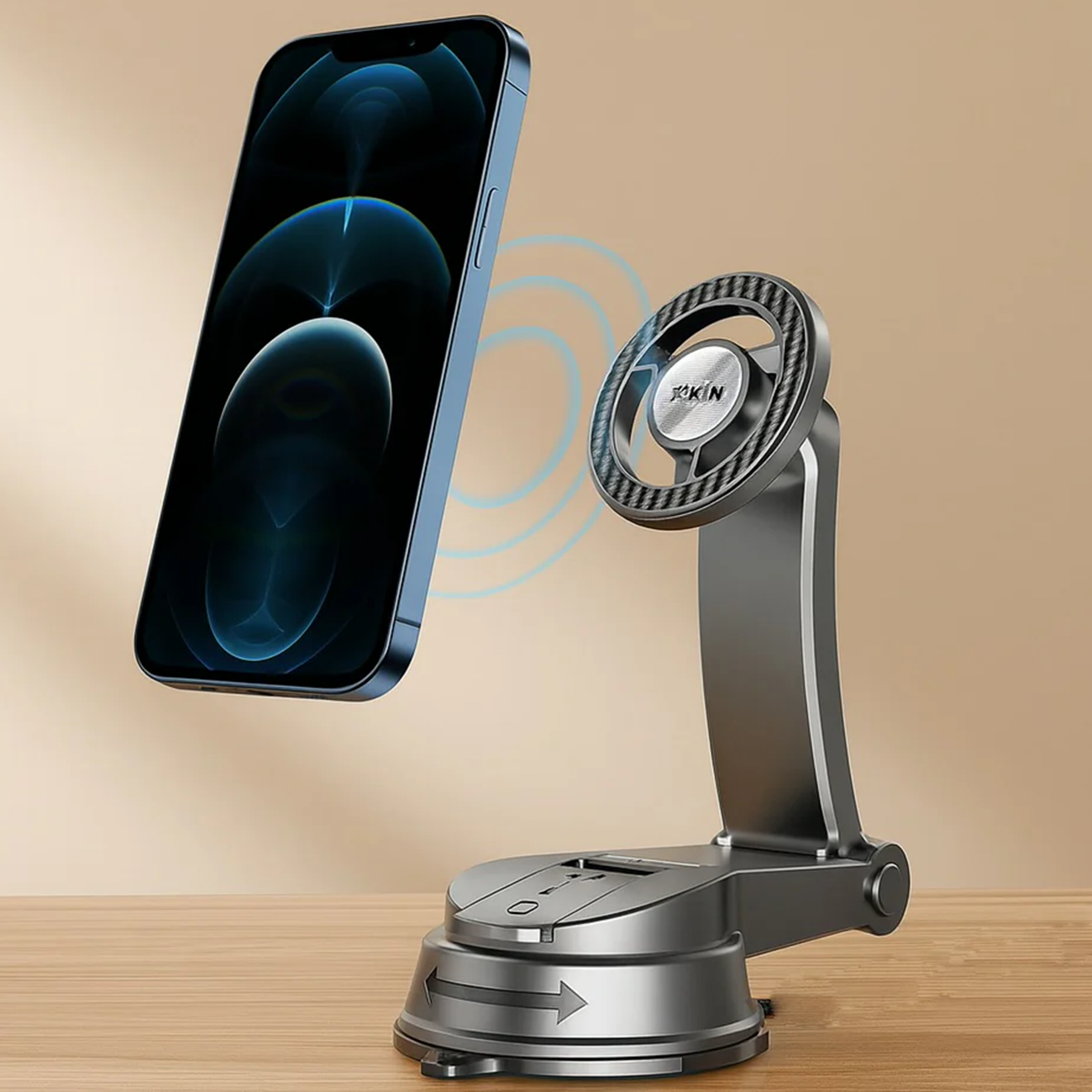 قلب XK-Holder10، مگنت N52 فوقالعاده قوی است که وزنی تا 7 کیلوگرم رو تحمل میکنه و گوشی رو محکم در جای خودش نگه میداره. حتی در مسیرهای پر از دستانداز یا سرعتگیر، کوچکترین حرکتی نمیبینید—گوشی مثل آهنربا چسبیده!