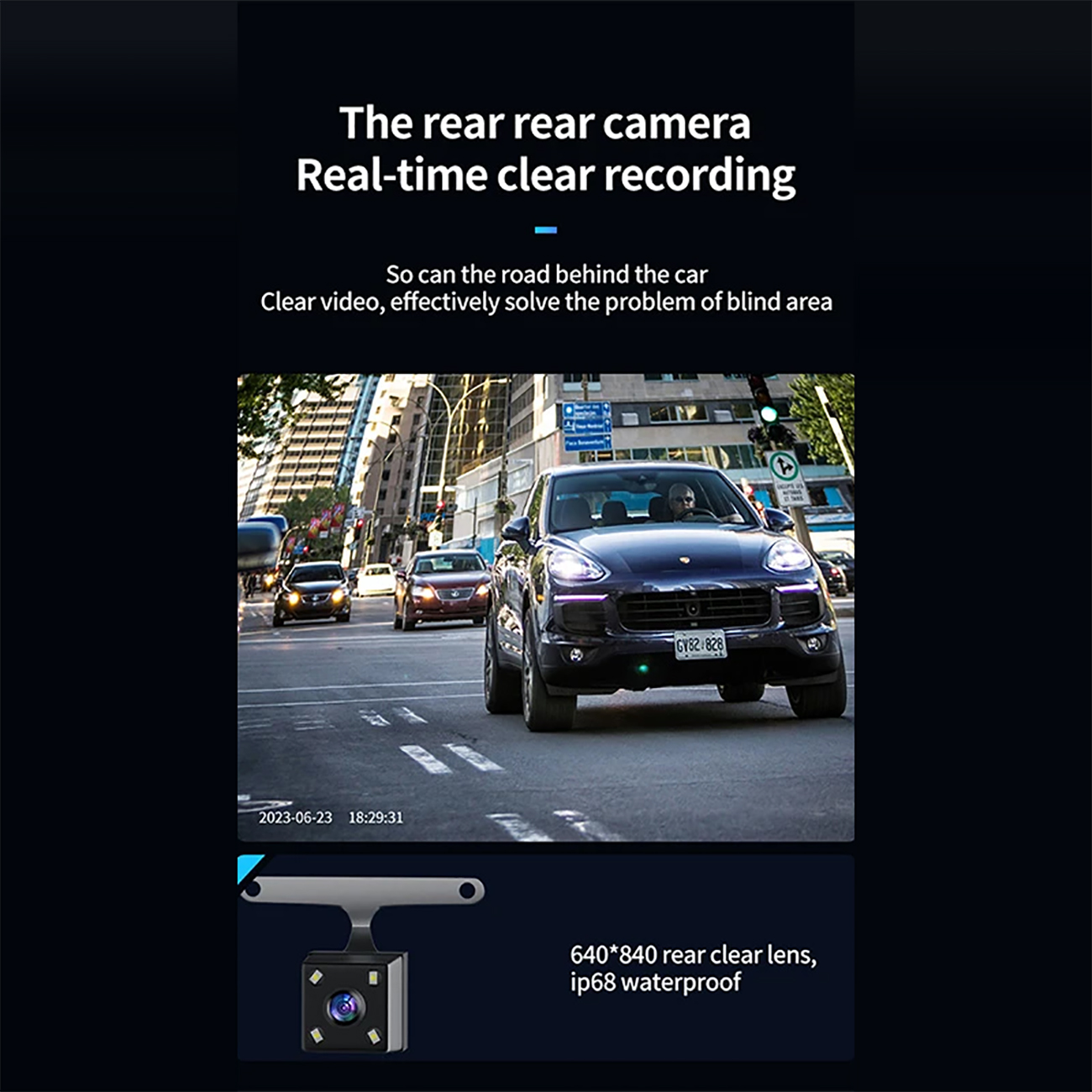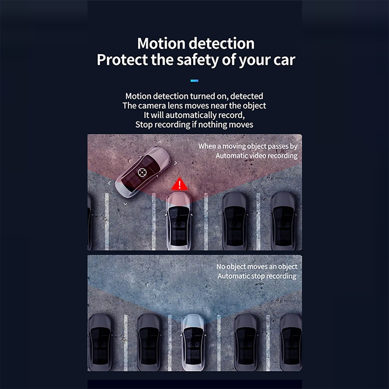یکی از ویژگیهای برجسته این دوربین، مانیتورینگ پارک 24 ساعته است که با استفاده از حسگرهای حرکتی، هرگونه حرکت یا ضربه در اطراف خودرو را در حالت پارک تشخیص میدهد. این سیستم بهطور خودکار در حالت کممصرف فعال میشود و فیلمها را در فایلهای جداگانه ذخیره میکند تا از بازنویسی آنها جلوگیری شود.