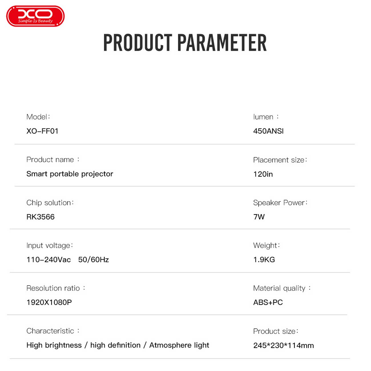 | ویدئو پروژکتور قابل حمل هوشمند ایکس او | |