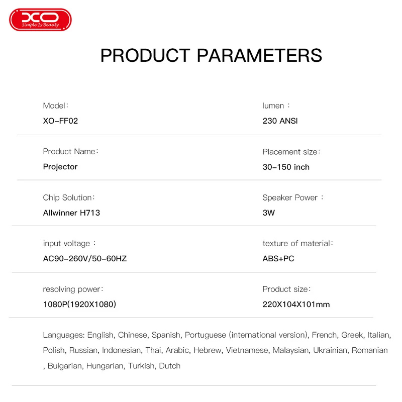 ویدئو پروژکتور XO مدل FF02 - سینمای شخصی شما در هر مکانی!
