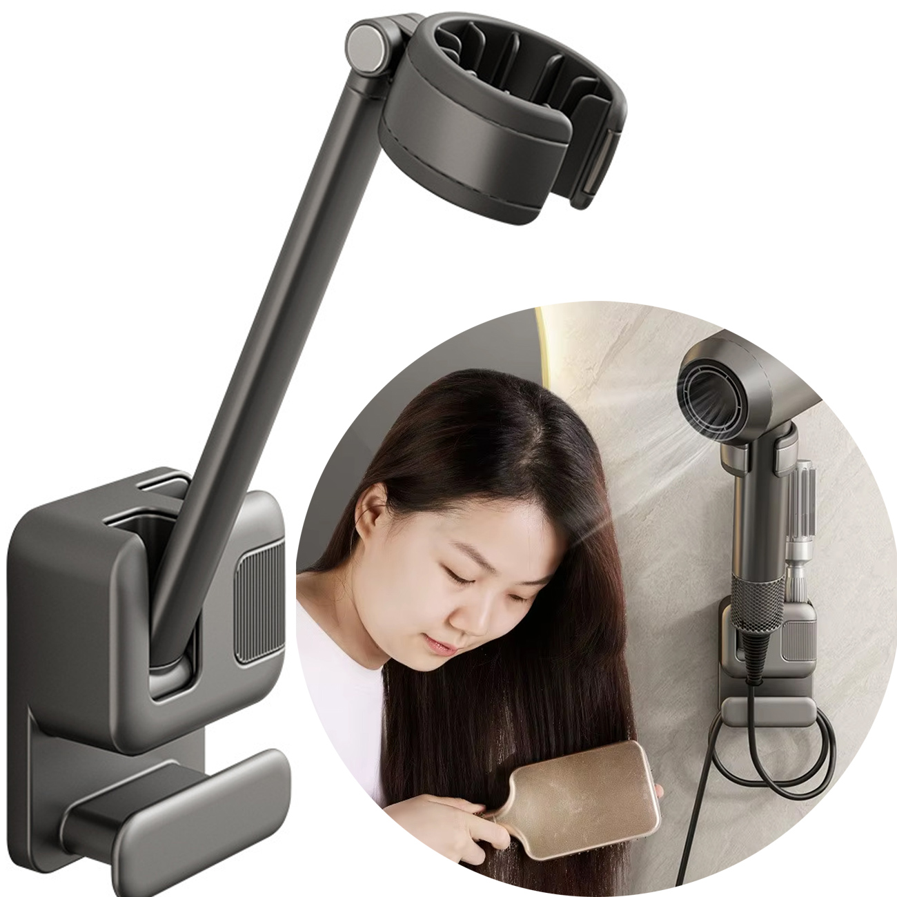 محل قرارگیری سشوار روی این نگهدارنده به راحتی قابل تنظیم است و شما میتوانید زاویه آن را متناسب با نیاز خود تغییر دهید. این قابلیت نه تنها باعث آزادی عمل دستها هنگام استفاده میشود، بلکه امکان قرارگیری سشوار در دقیقاً همان موقعیت مطلوب را فراهم میکند. انعطاف در تنظیم زاویه، تجربهای راحت و بدون خستگی را حتی در استفادههای طولانیمدت تضمین میکند.
