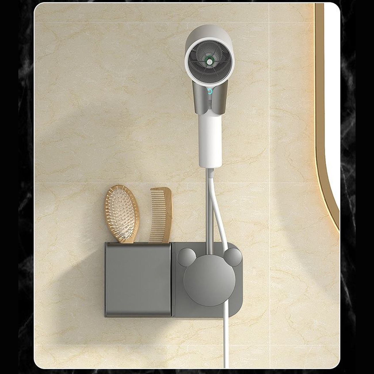 نگهدارنده سشوار و لوازم شخصی YOUGIN با طراحی هوشمندانه خود، ترکیبی زیبا از زیبایی ظاهری و کارایی عملی را برای فضای حمام شما به ارمغان میآورد. متریال باکیفیت و ساخت دقیق آن، تجربهای متفاوت از نظم و راحتی در زندگی روزمره ایجاد کرده و توجه شما را به دقت در جزئیات طراحی و عملکردش جلب میکند.