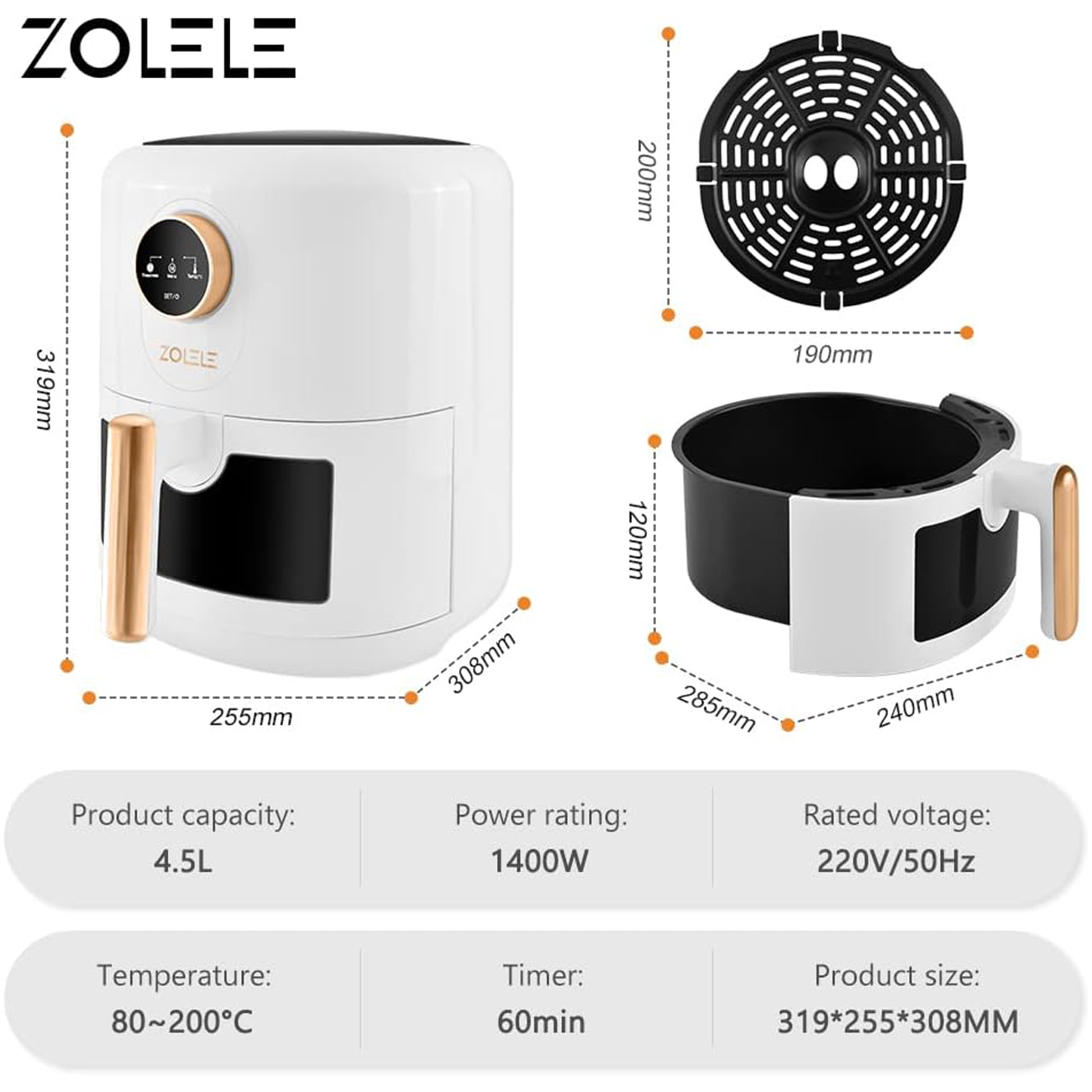 هواپز و سرخکن بدون روغن زوله له ZOLELE مدل ZA004 ظرفیت 4.5 لیتری